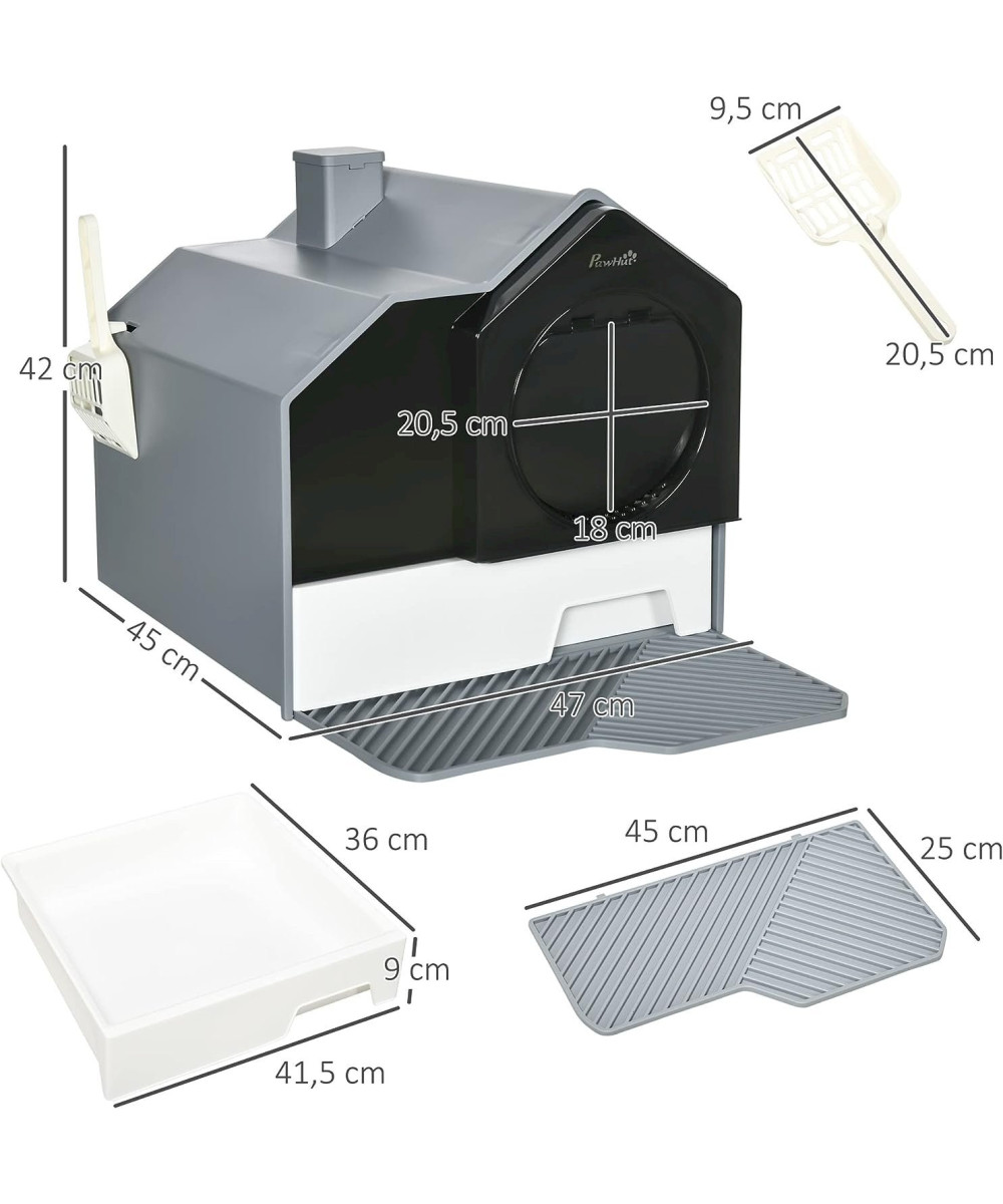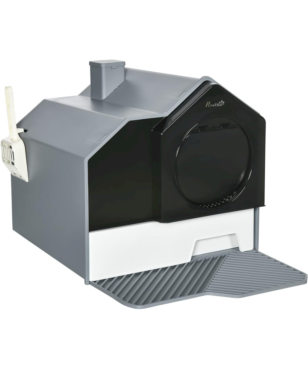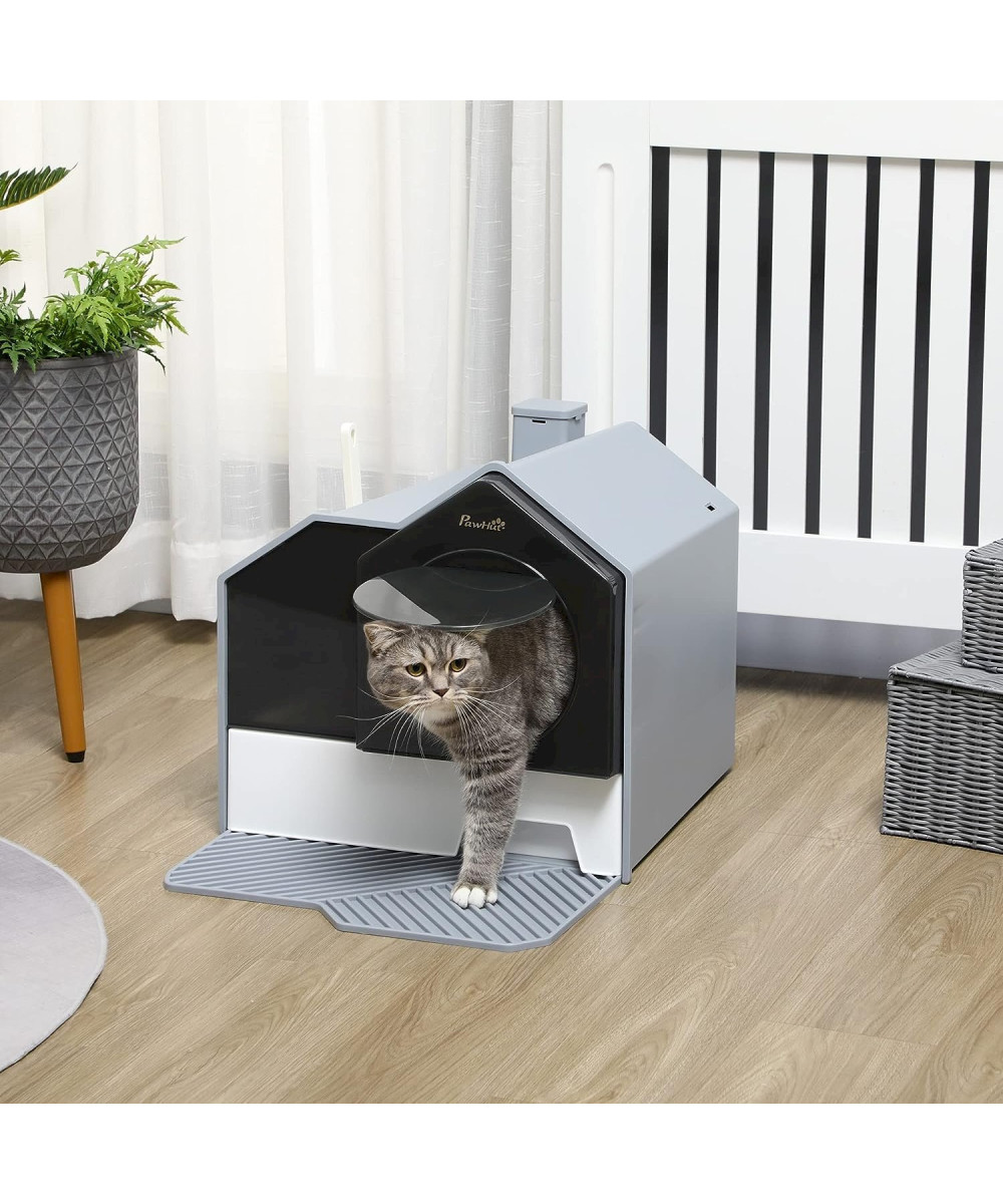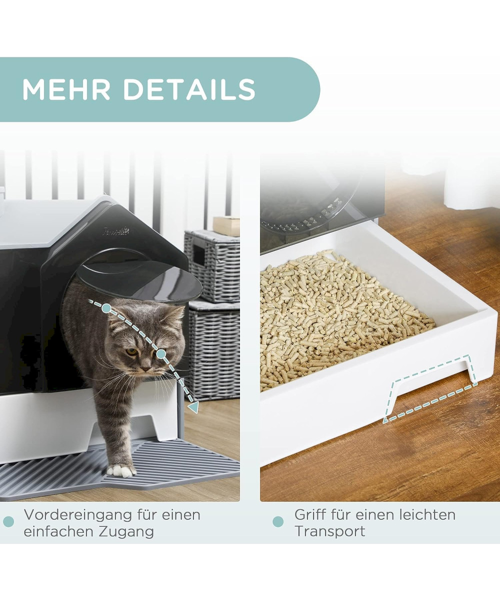 PawHut Katzentoilette im niedlichen Design Grau + Weiß