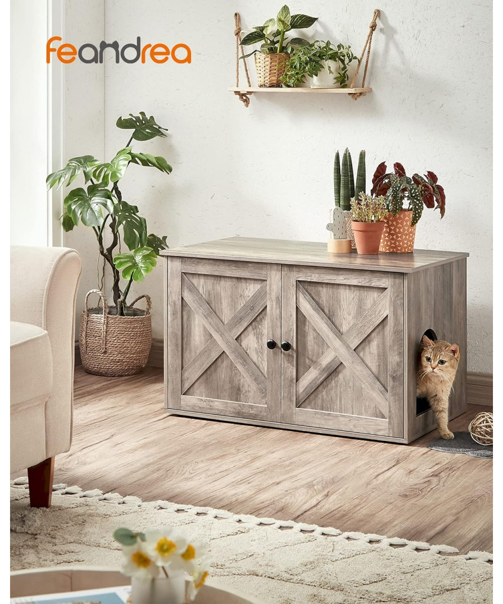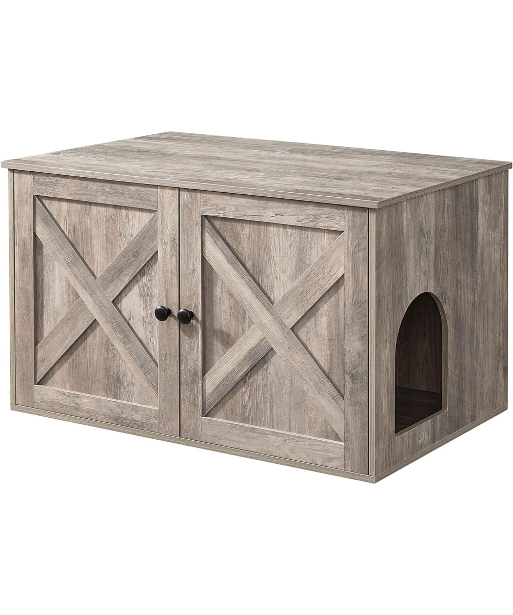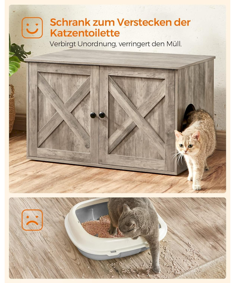 - [Stilvolles Katzenklo] Mit seinem rustikalen Stil und den schicken Scheunentüren fügt sich dieses Katzenklo problemlos in die meisten Wohnstile ein und verwandelt das stille Örtchen Ihrer Katze in einen echten Blickfänger