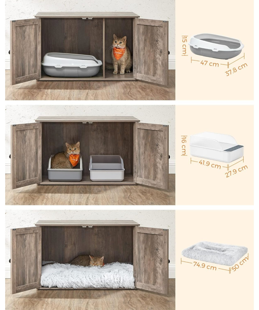 - [Geräumiger Innenraum] Mit einer Größe von 50 x 50 x 46 cm bietet das Hauptfach dieses Katzenschranks genug Platz für die meisten Katzentoiletten. Sie können auch die Trennwand entfernen, um die Fläche auf 74,9 x 50 x 46 cm zu vergrößern