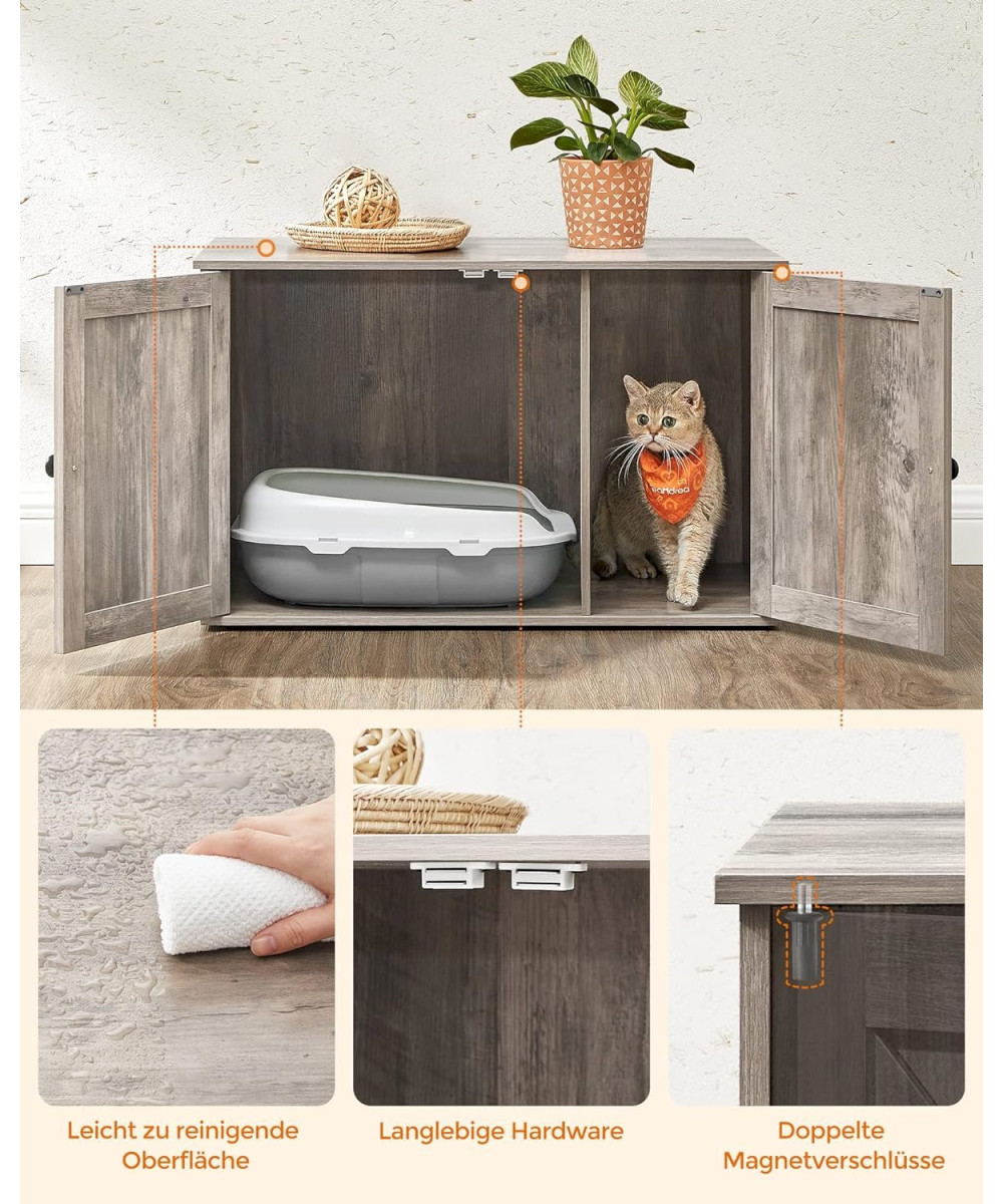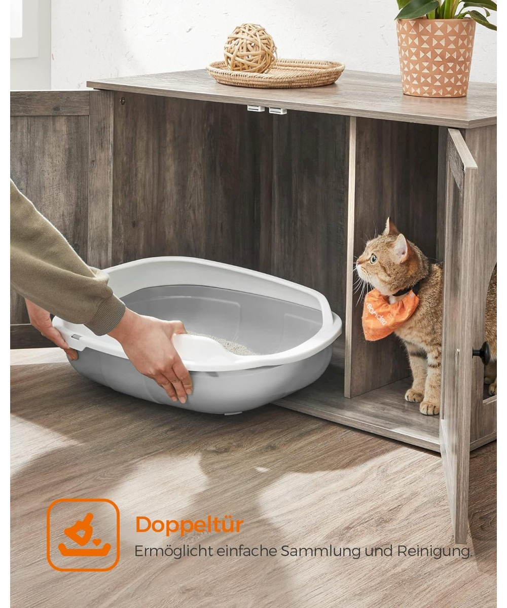 Feandrea Katzenklo-Schrank Katzenhaus mit Türen Greige