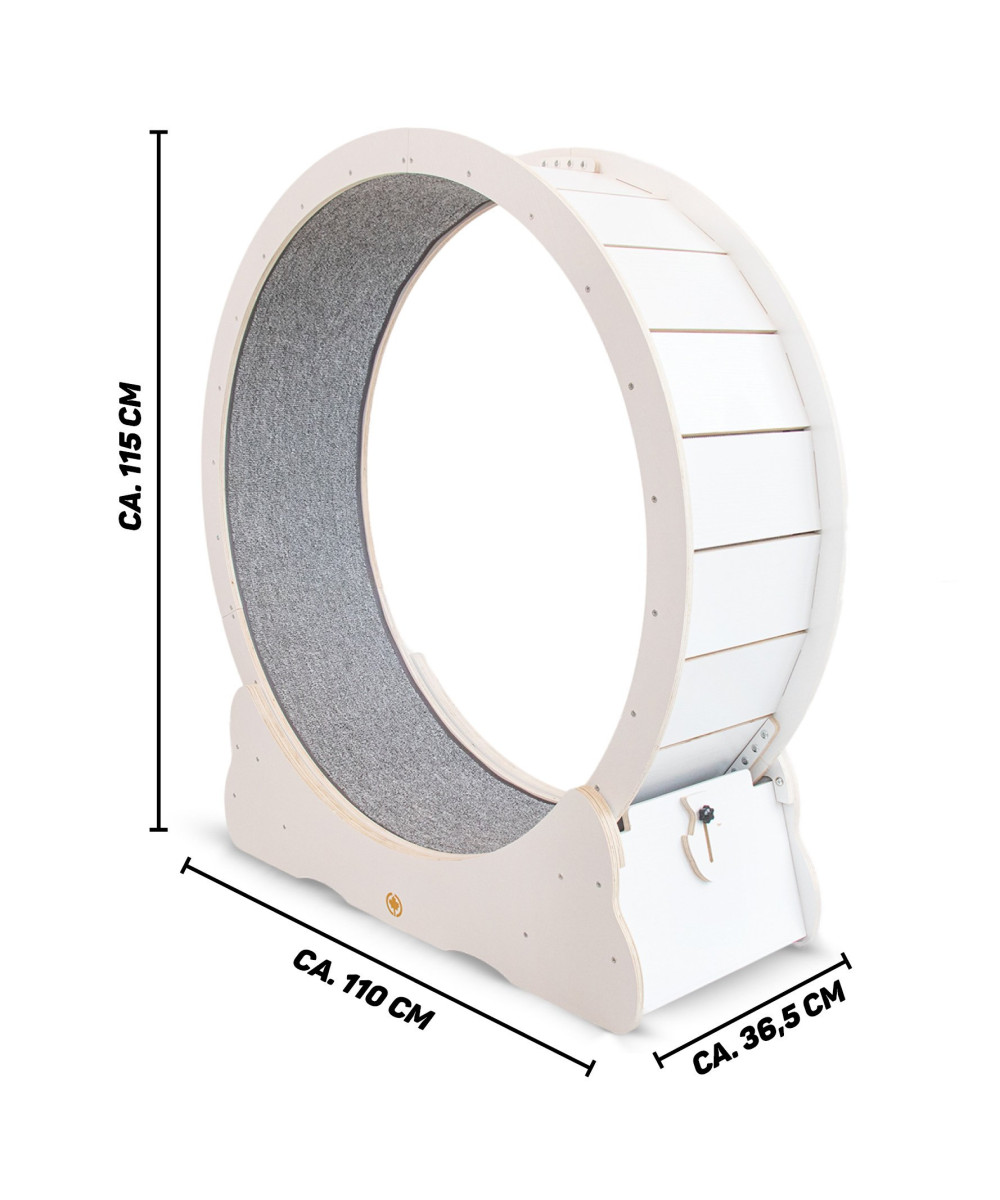 CanadianCat Company Katzenlaufrad aus Holz L - 110 x 36,5 x 115 cm weiß