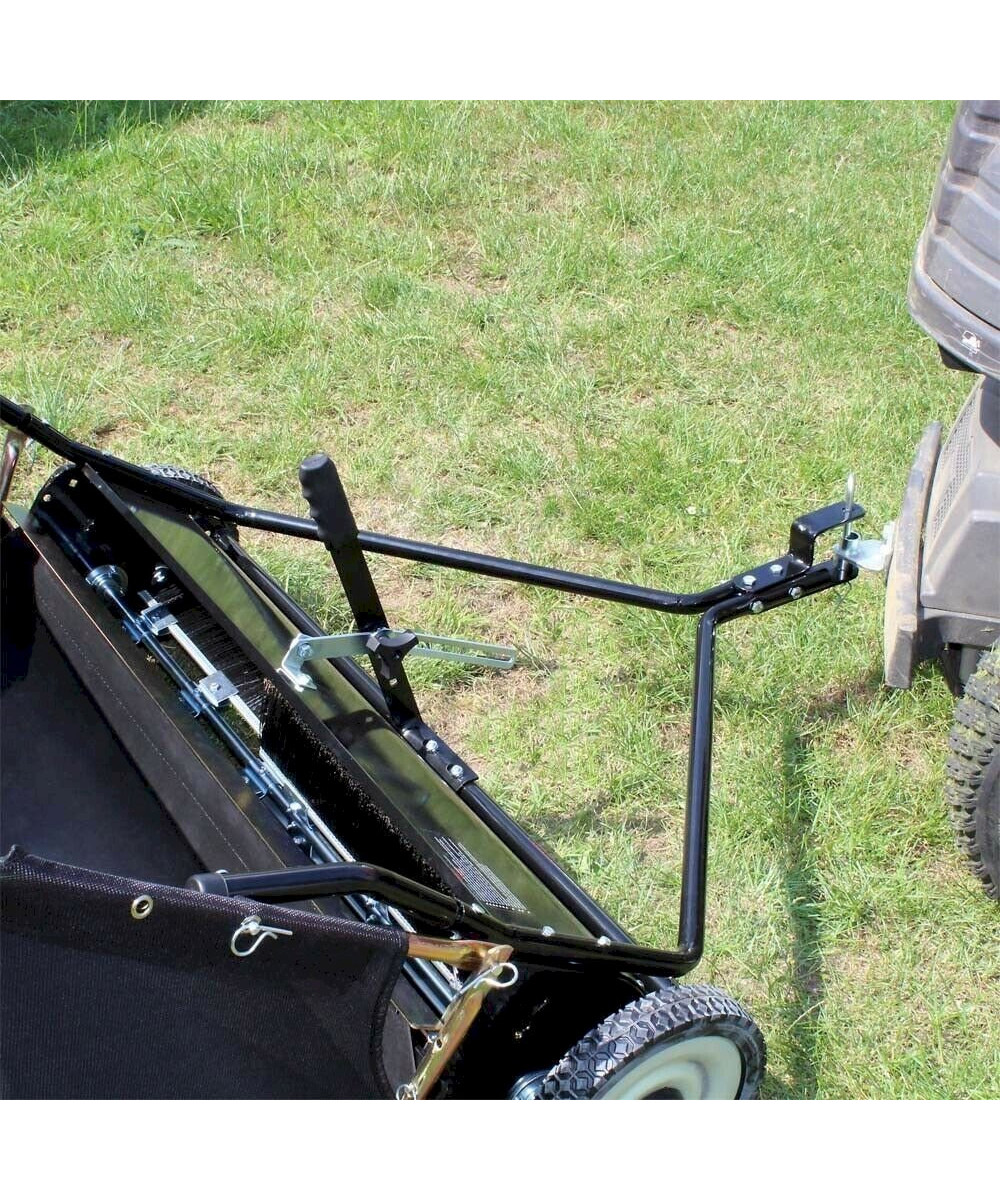 Mit der Rasenkehrmaschine für Aufsitzmäher ist es ein Einfaches Rasenschnitt, Herbstlaub oder anderen Schmutz von der Rasenfläche zu entfernen.