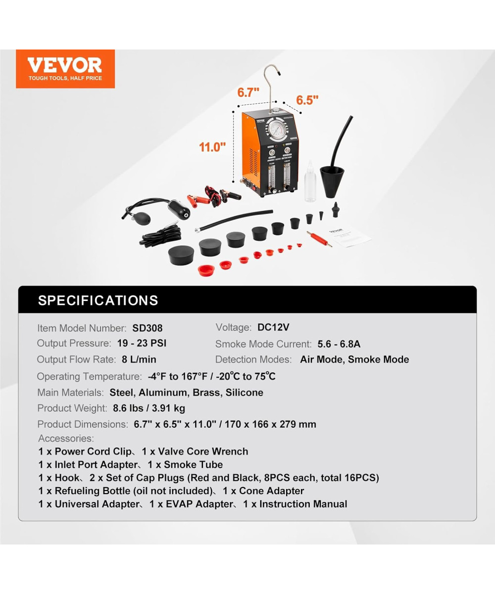 VEVOR Kfz-Rauchmaschine 8 L/min EVAP Vakuum-Lecksucher Eingebaute Luftpumpe