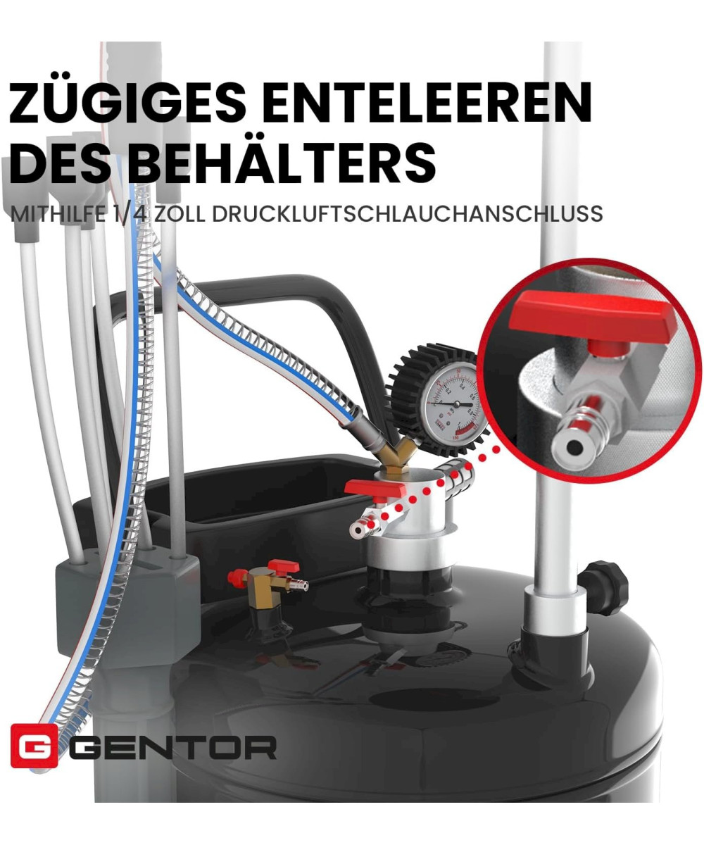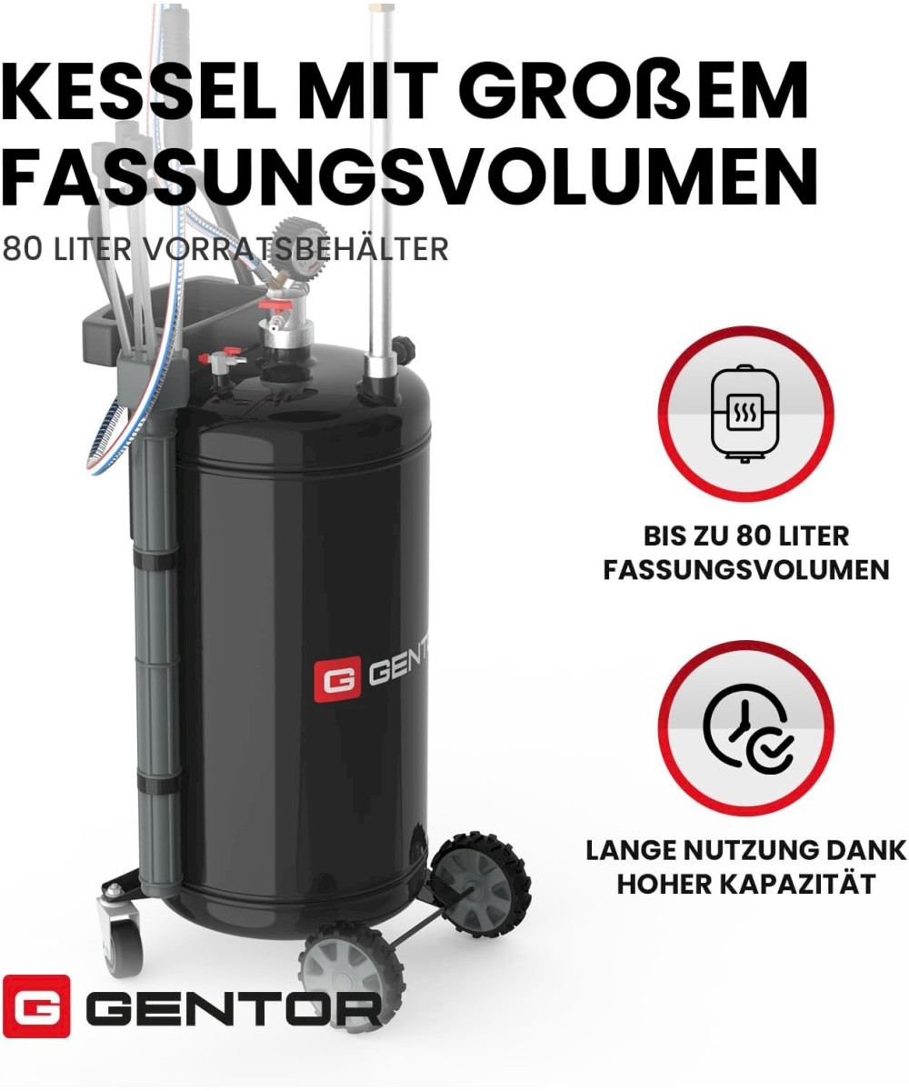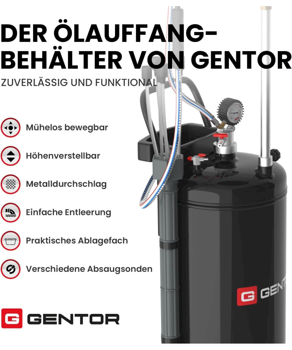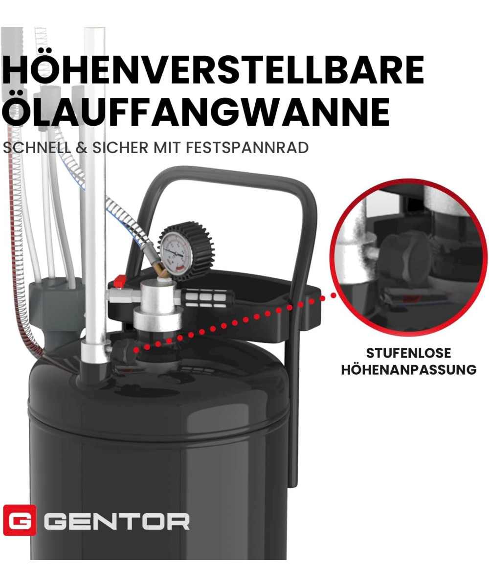 Mit bis zu 80l Kapazität bietet Ihnen der Ölauffangwagen Ölablassgerät von Gentor genügend Kapazität für eine Vielzahl an Ölwechseln.