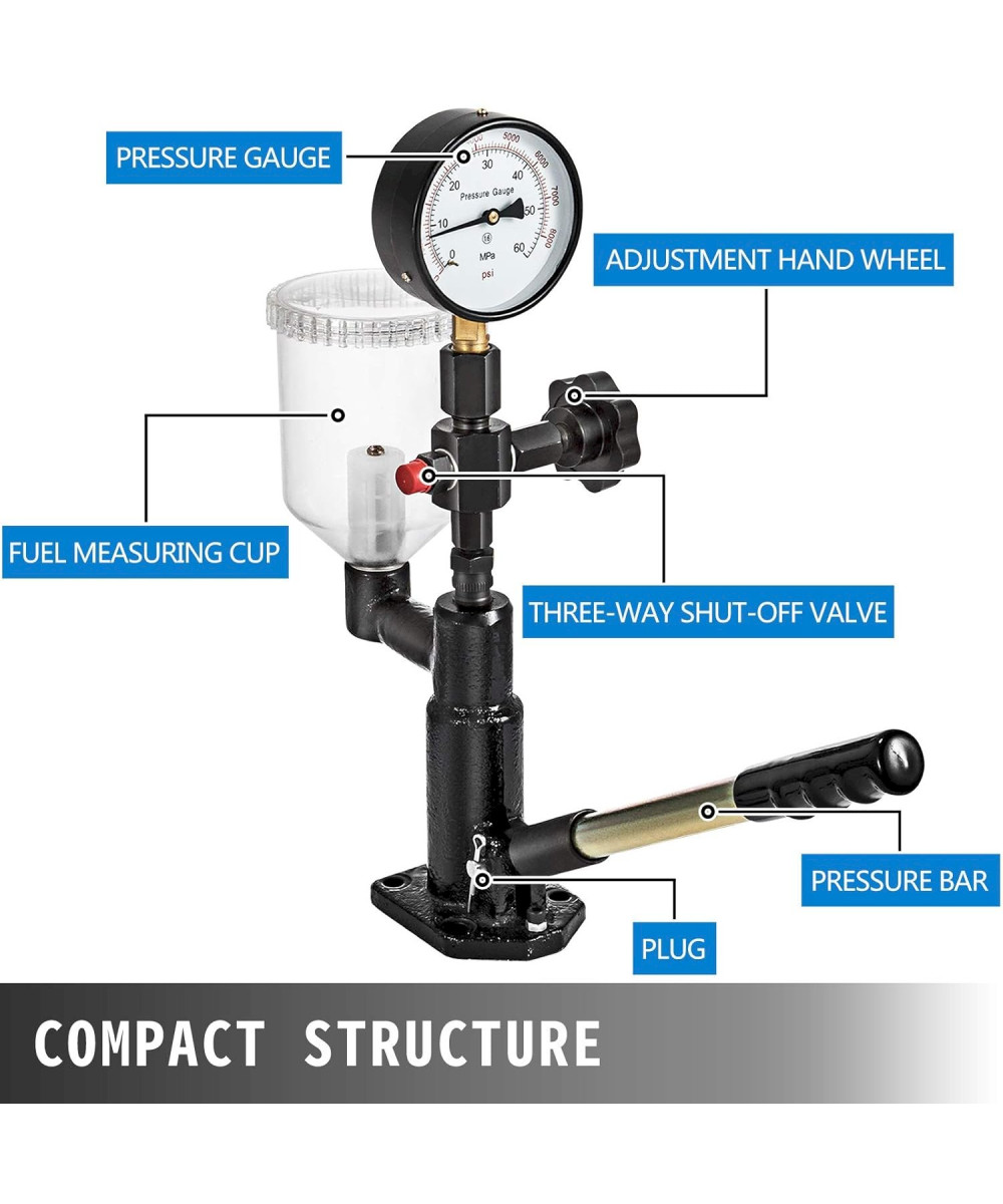 VEVOR Diesel Einspritzdüsen Tester Prüfgerät Abdrückgerät Injektor Manometer 600 Bar