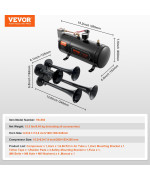 VEVOR Zughupen-Set 4 Trompeten-Lufthupen-Set Luftkompressor 3L Tank