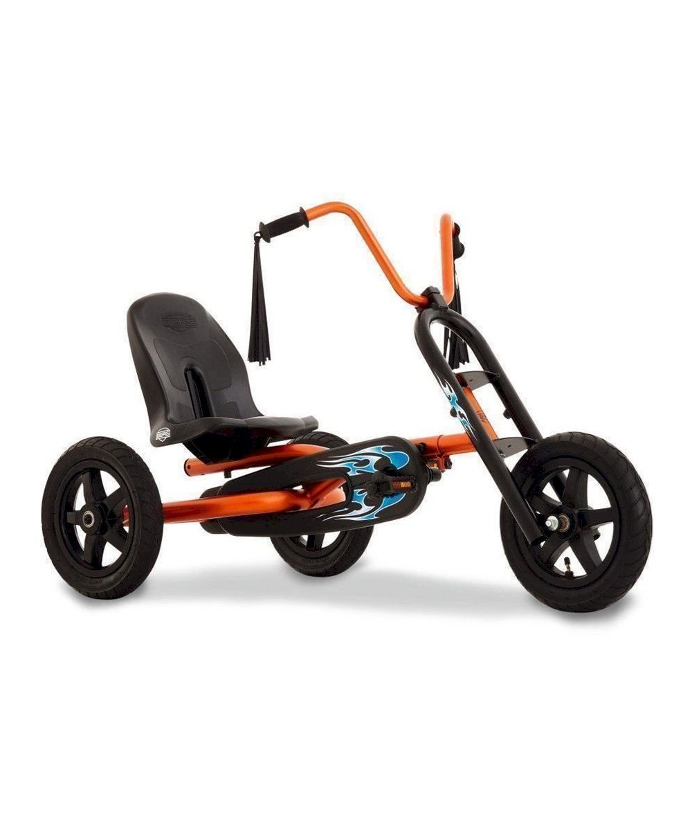 Dann solltest du dir einmal den BERG Choppy ansehen! Ein Pedal-Gokart mit speziellem Metallic-Lack und cooler schwarzer Vorderradgabel. Die speziell entworfenen Sticker machen diesen Pedal-Gokart zu etwas ganz Besonderem. Dank der BFR-Nabe ist der Choppy sicher im Gebrauch.