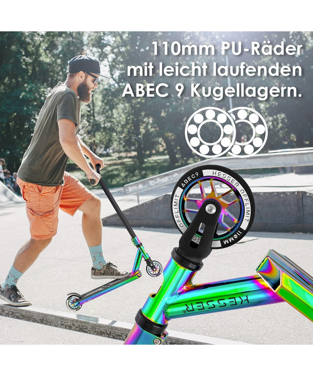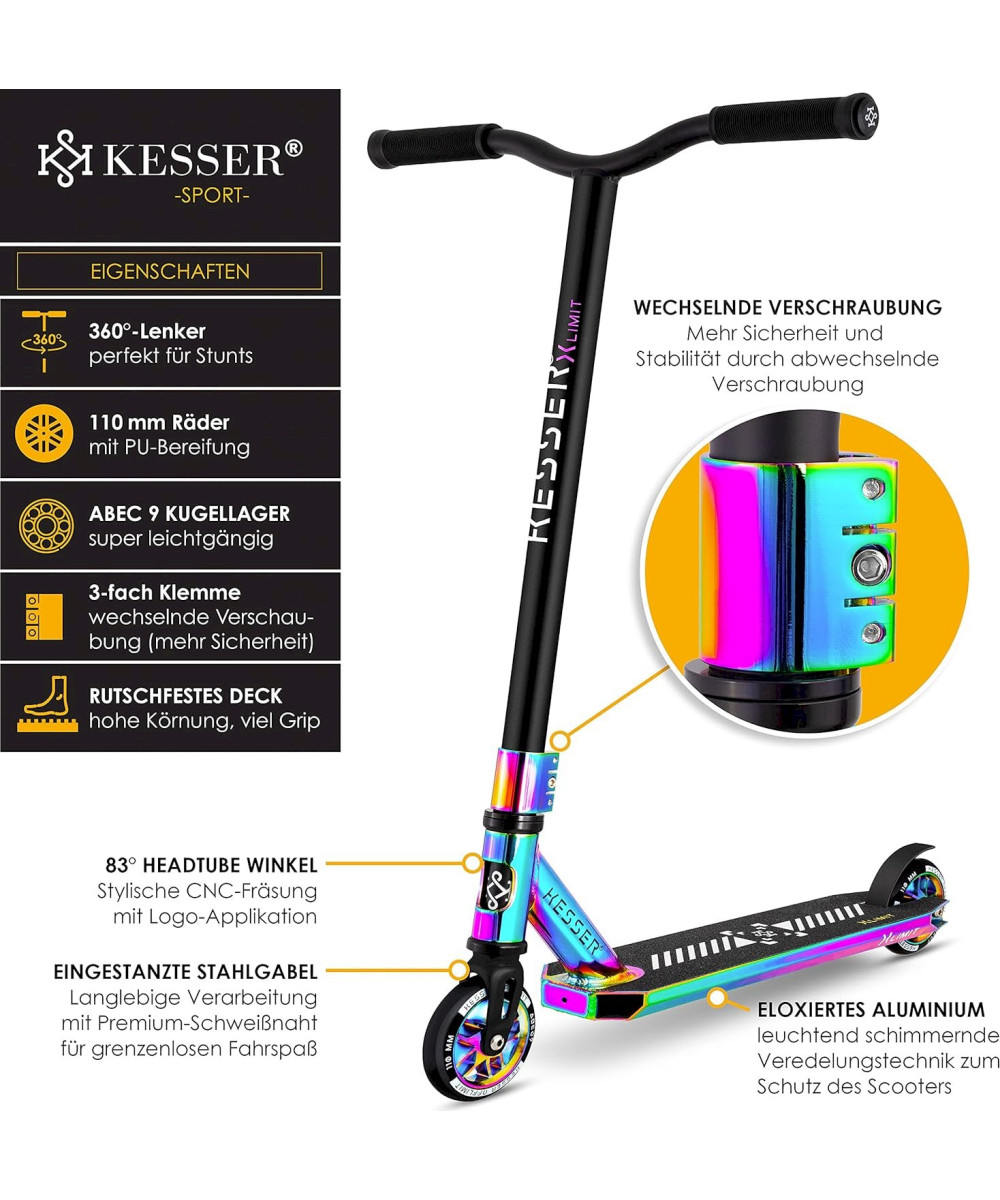 KESSER X-Limit-Pro Stunt Scooter 110mm PU Räder mit Ständer rainbow