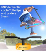 Mit einer großzügigen Trittfläche ist der Funsport-Scooter sowohl für Kinder ab acht Jahren als auch für Anfänger und Erwachsene geeignet. Hier haben wir für Sie den perfekten Stunt Roller, um erste Tricks im Skatepark, der Pipe oder auf dem Asphalt zu erlernen und zu perfektionieren. Aber ebenso einfache Fahrten durch die Stadt lassen den Scooter zum absoluten Highlight werden. Genießen Sie die Fahrten mit Ihren Freunden und erlernen Sie oder Ihre Kids den coolen Street Style.