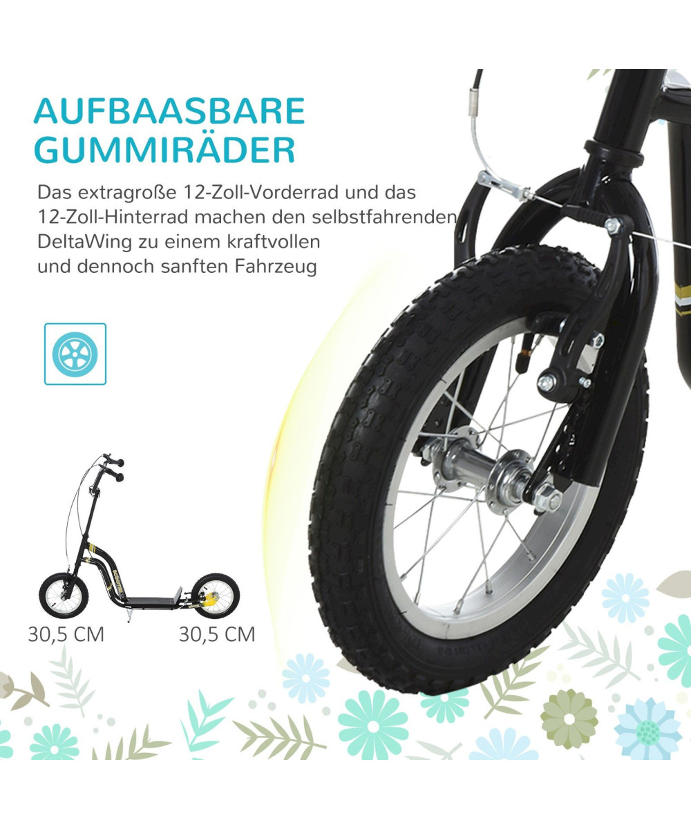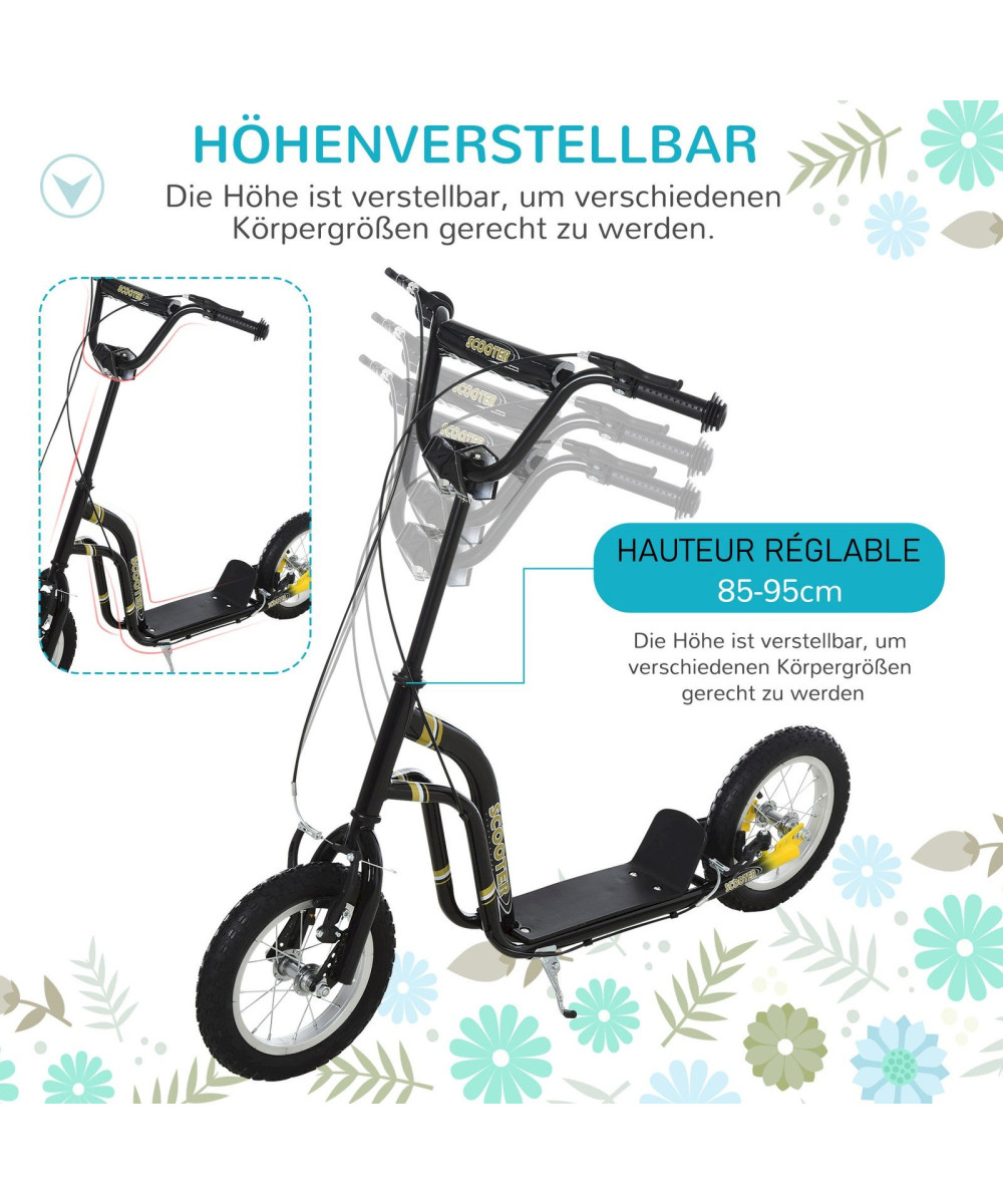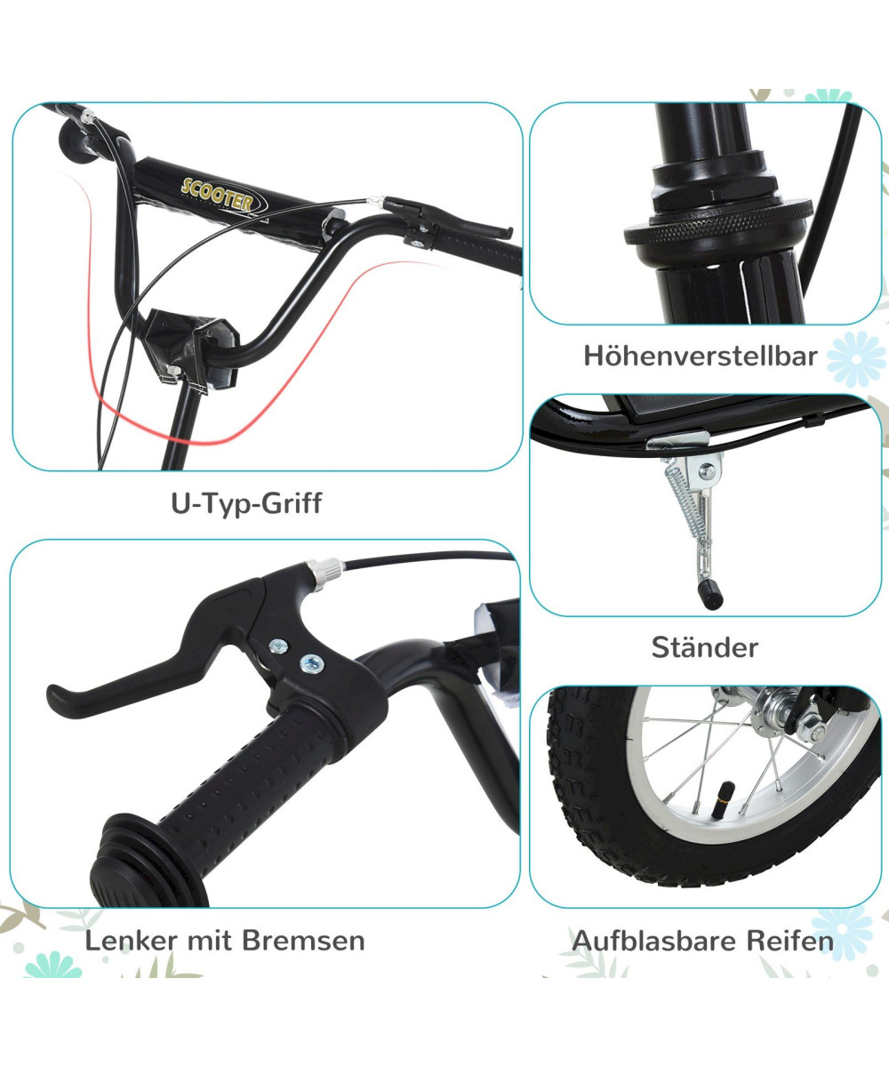 HOMCOM Kinderroller ab 5 Jahre Scooter Kinderscooter Tretroller Cityroller Schwarz