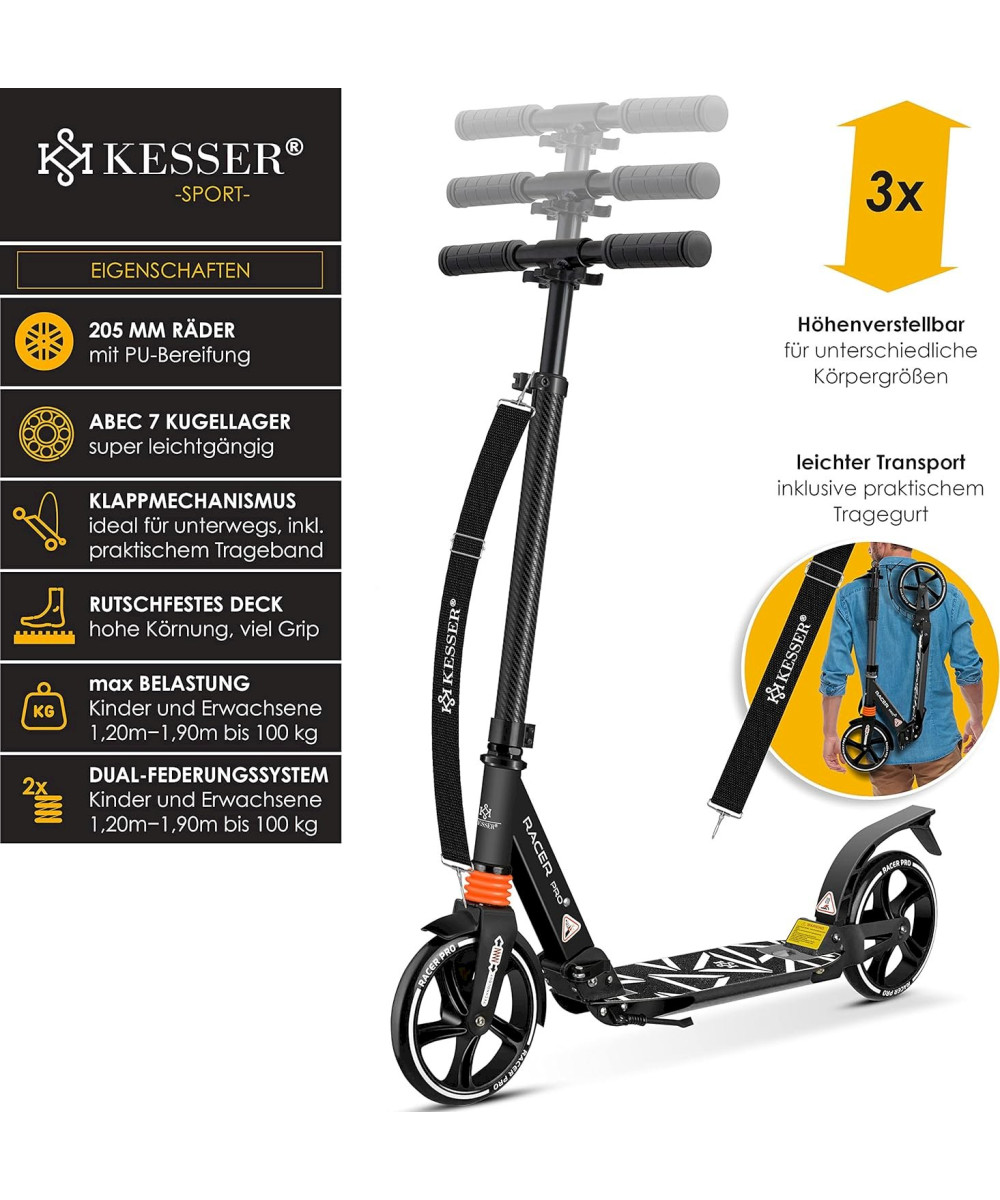KESSER Cityroller Scooter Kinderroller Tretroller Kickroller 205mm Carbon