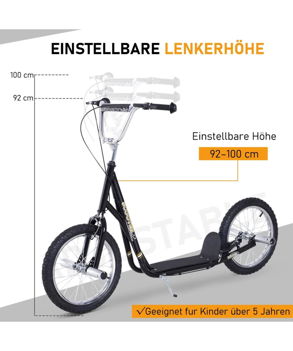 Kinderroller mit Luftbereifung und Handbremse schwarz