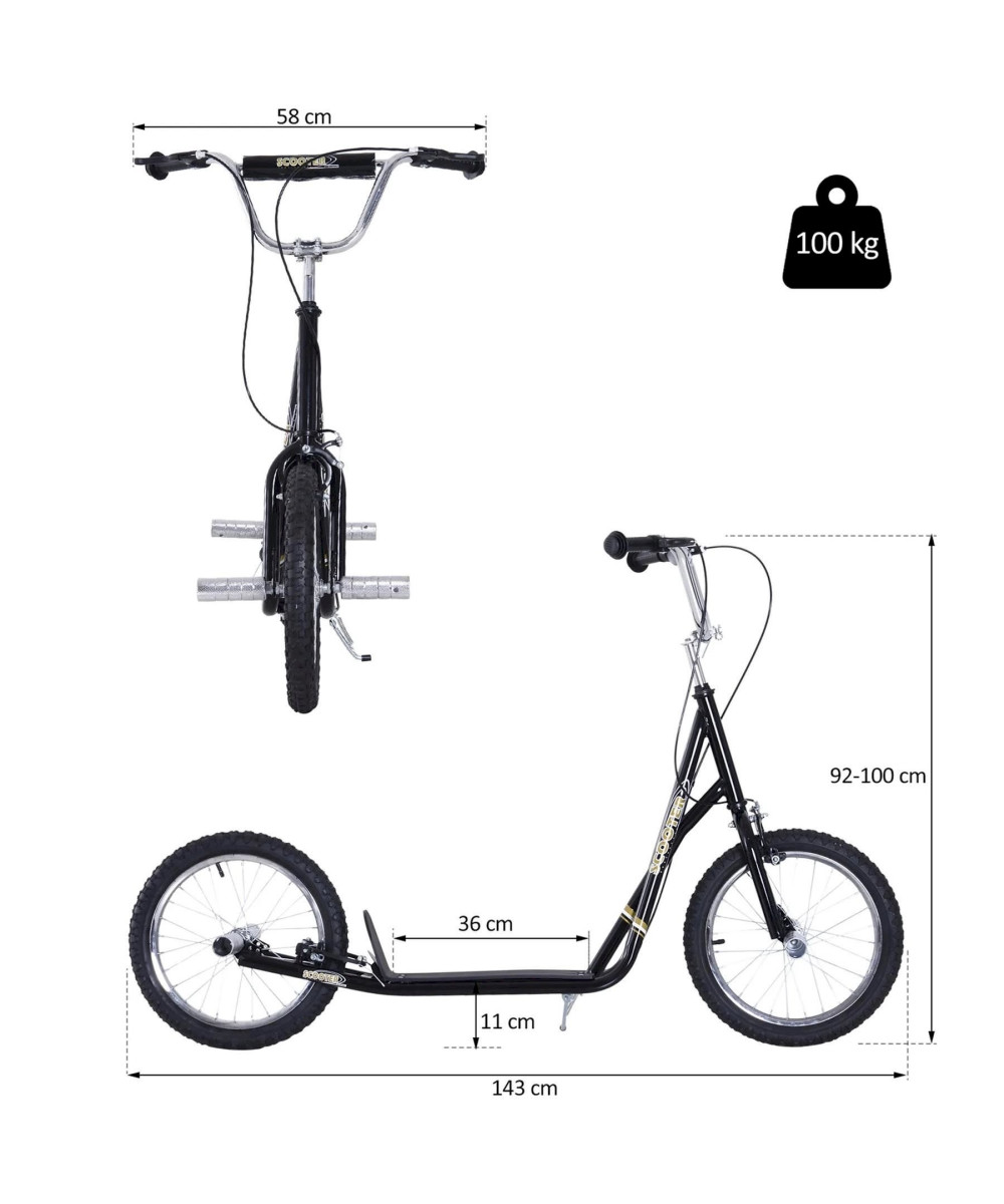 Ein Tretroller für die ganze Familie. Nicht nur für Kinder, sondern auch Geschwister, Eltern und Freunde. Denn für's schnellere Vorankommen zum Bäcker oder zur Arbeit eignet sich der Roller ebenfalls hervorragend. Dank 16“ Felgen und Luftbereifung gleiten Sie flott voran. Die V-Bremsen werden über den Lenker betätigt und bringen Sie sicher zum Stehen. Und dank des Ständers können Sie den Roller ganz bequem abstellen, ohne Ihn hinlegen zu müssen.