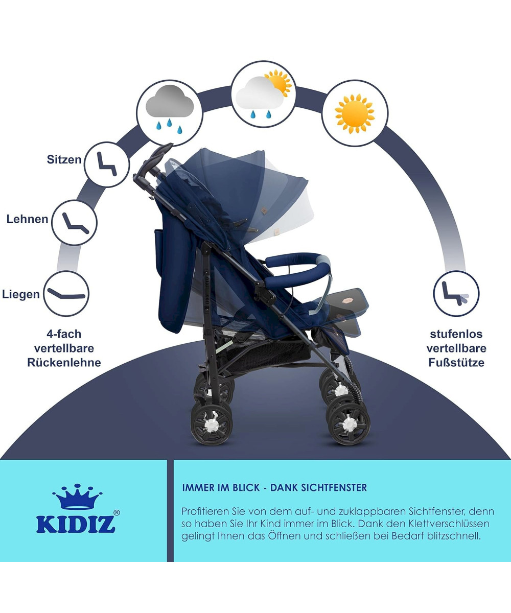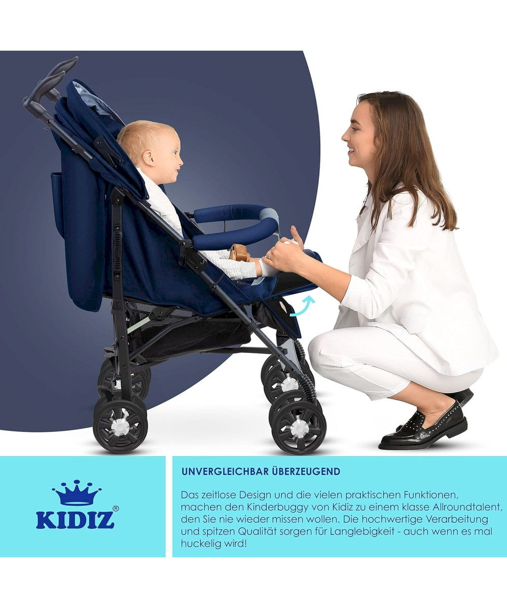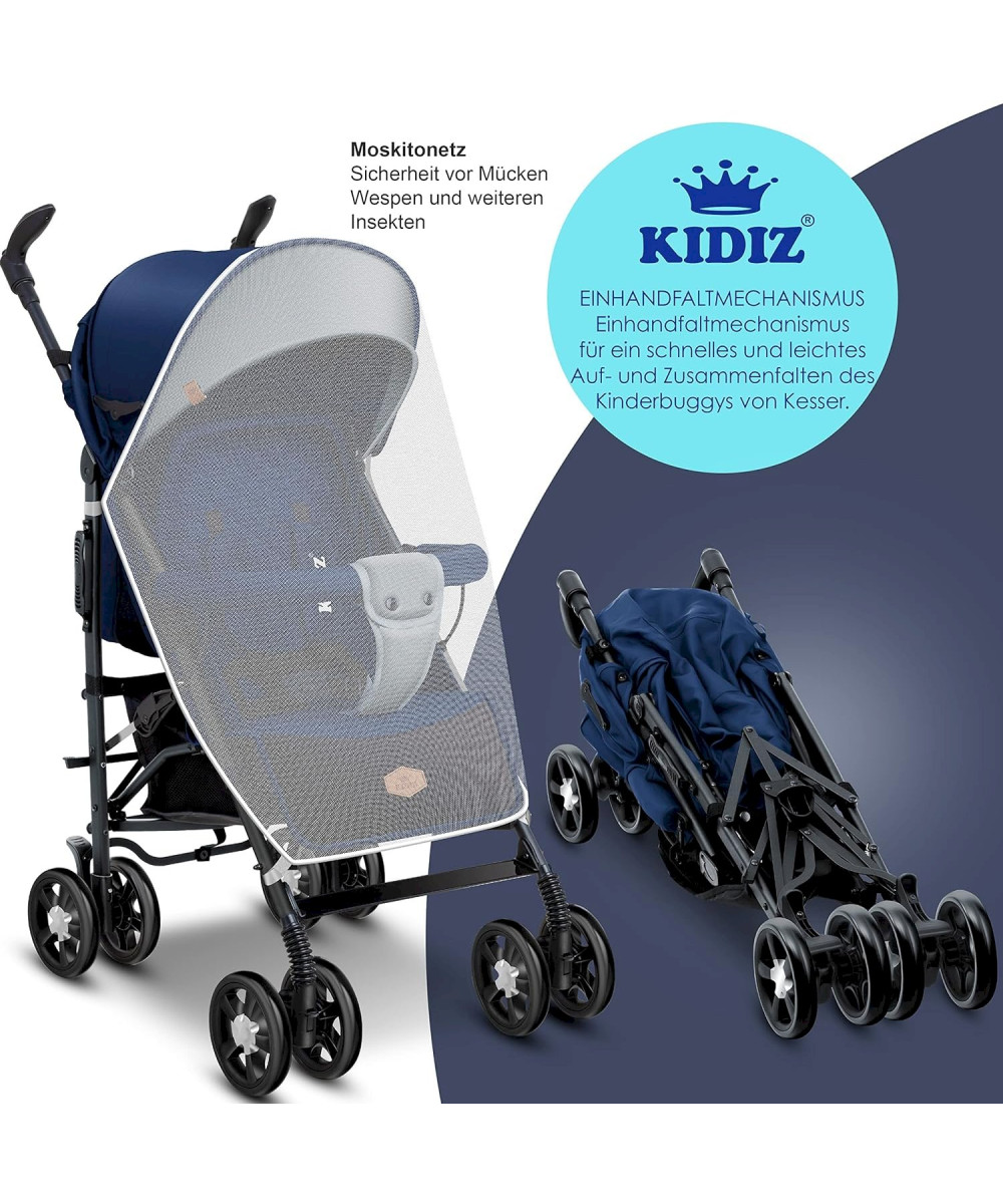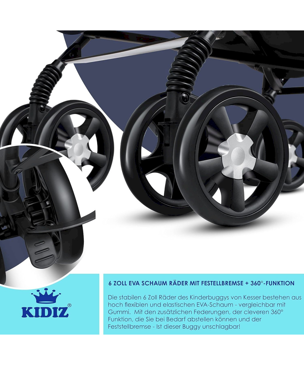 KIDIZ City-Pro Kinderwagen Kinderbuggy Buggy Reisebuggy klappbar Liegeposition Blau/Navy