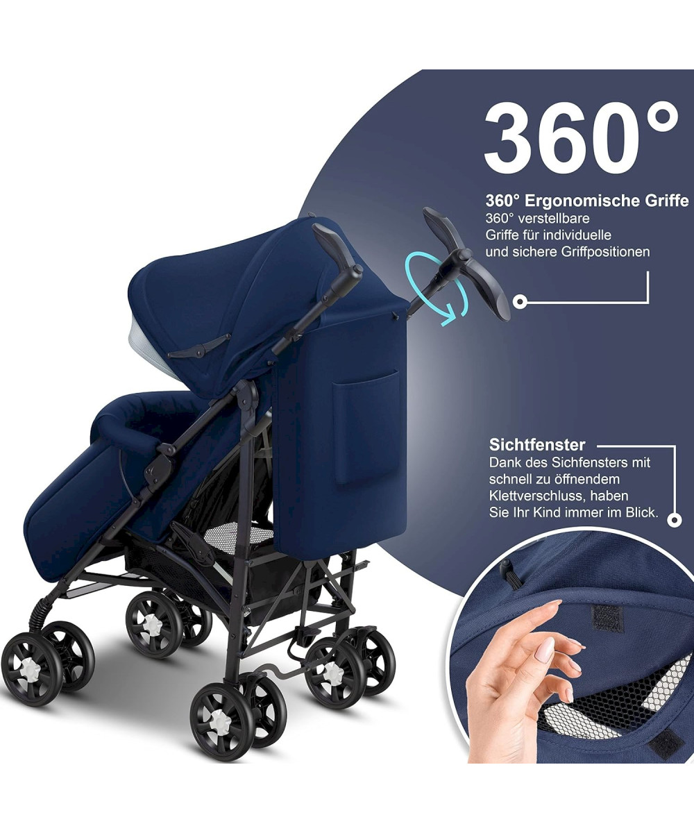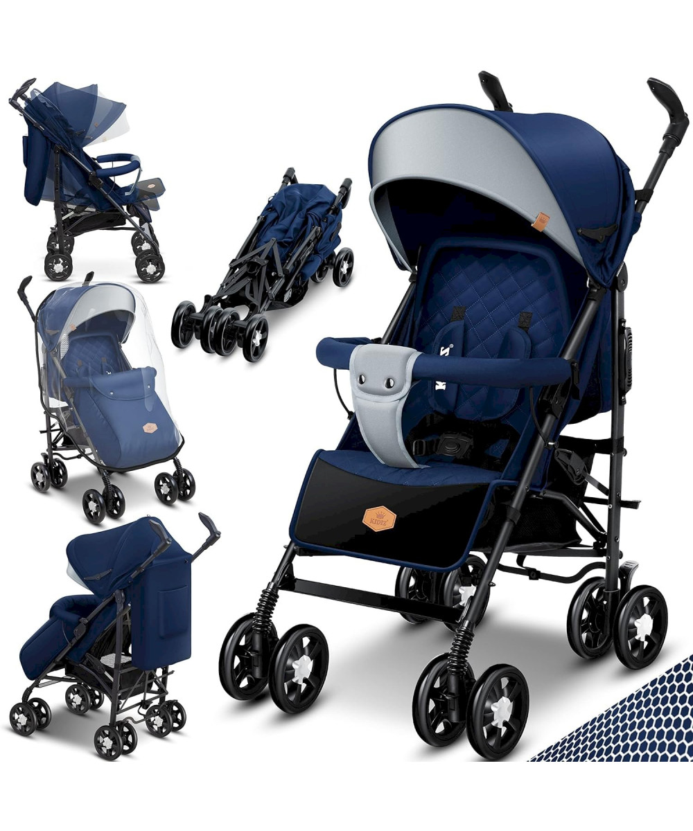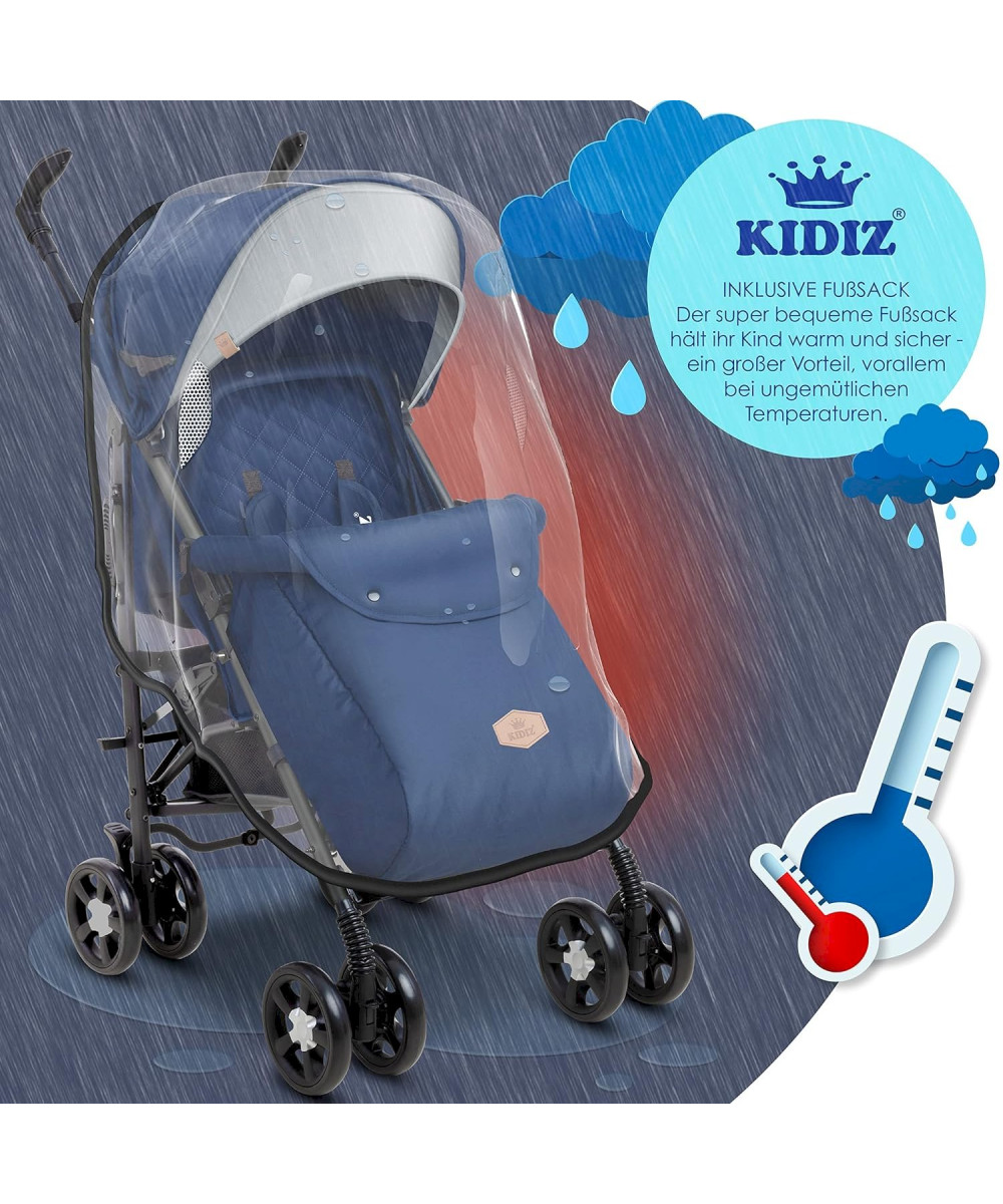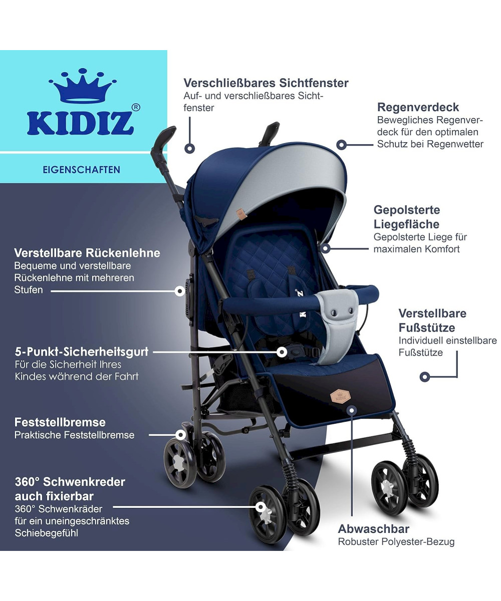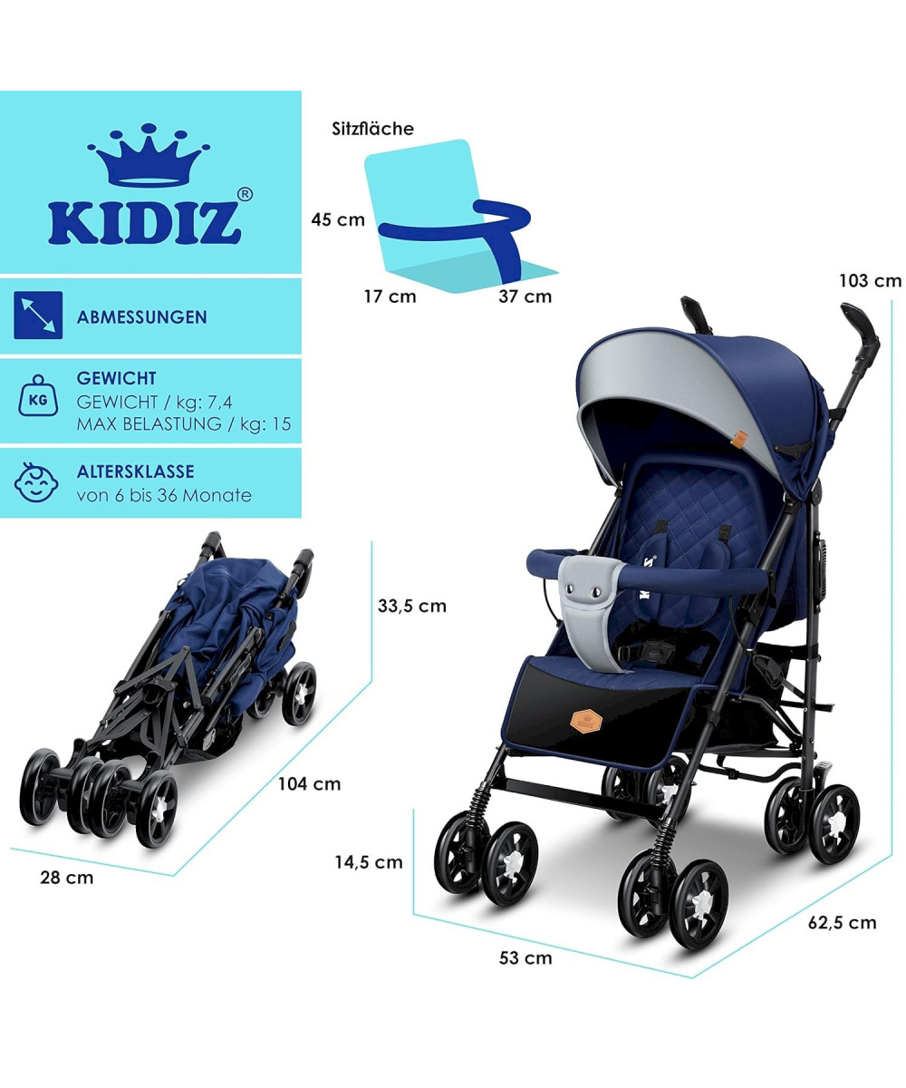 KIDIZ City-Pro Kinderwagen Kinderbuggy Buggy Reisebuggy klappbar Liegeposition Blau/Navy