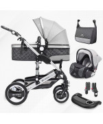 VESKA 3in1 Kombi-Kinderwagen Silber - anthrazit/grau Buggy Reisebuggy inkl. Auto- Babyschale