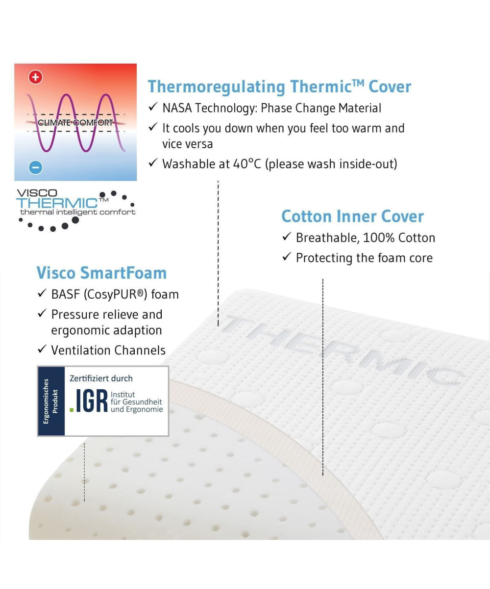 Perfektes Schlafklima Thermoregulierende Mikrokapseln im speziellen Thermic-Bezug sorgen für das ideale Temperaturmanagement - nicht zu warm, nicht zu kalt.