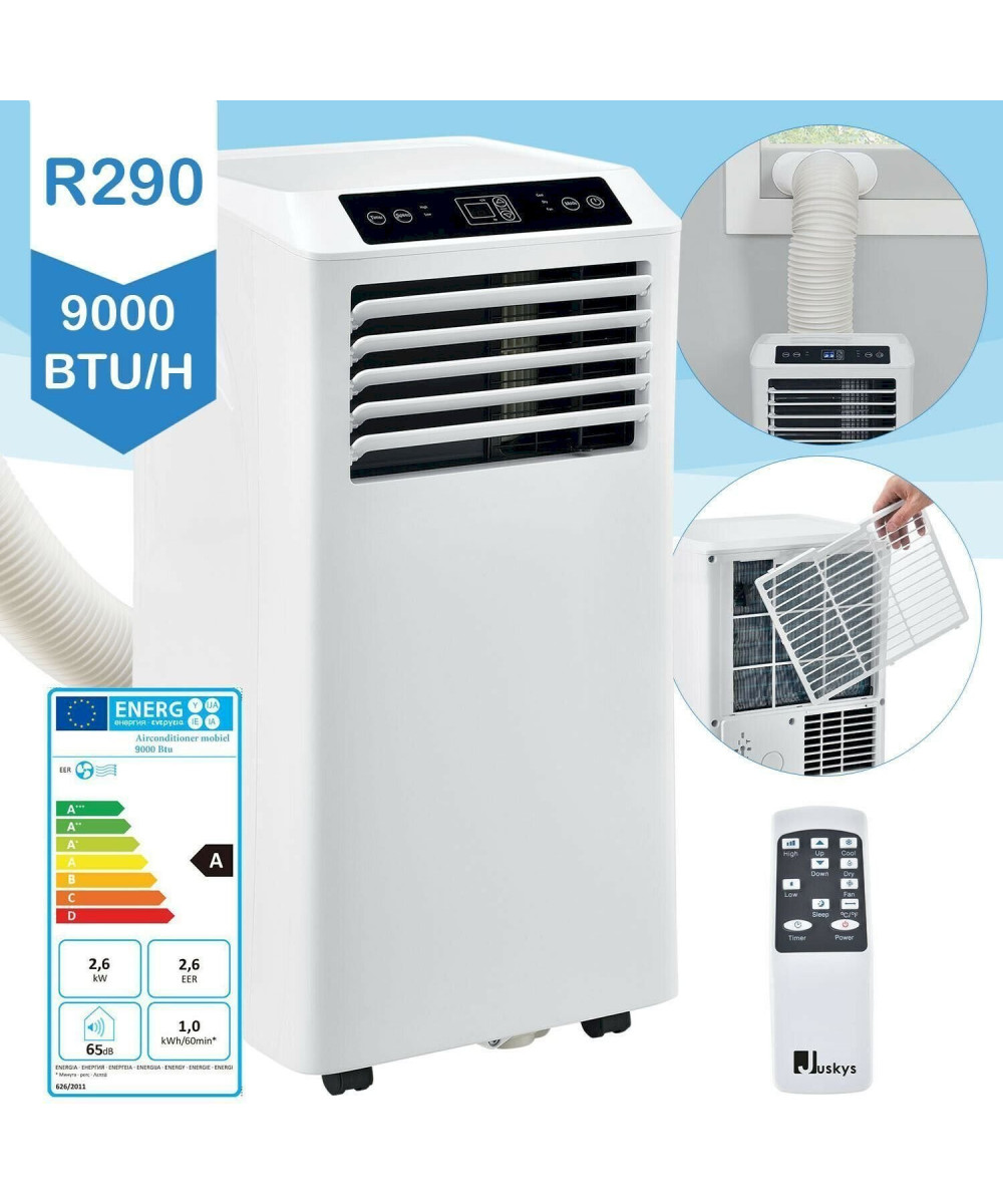 Juskys 51172 Mobile Klimaanlage Lokales Klimagerät 9000 BTU 2,6kW EEK A Ventilator Klima R290