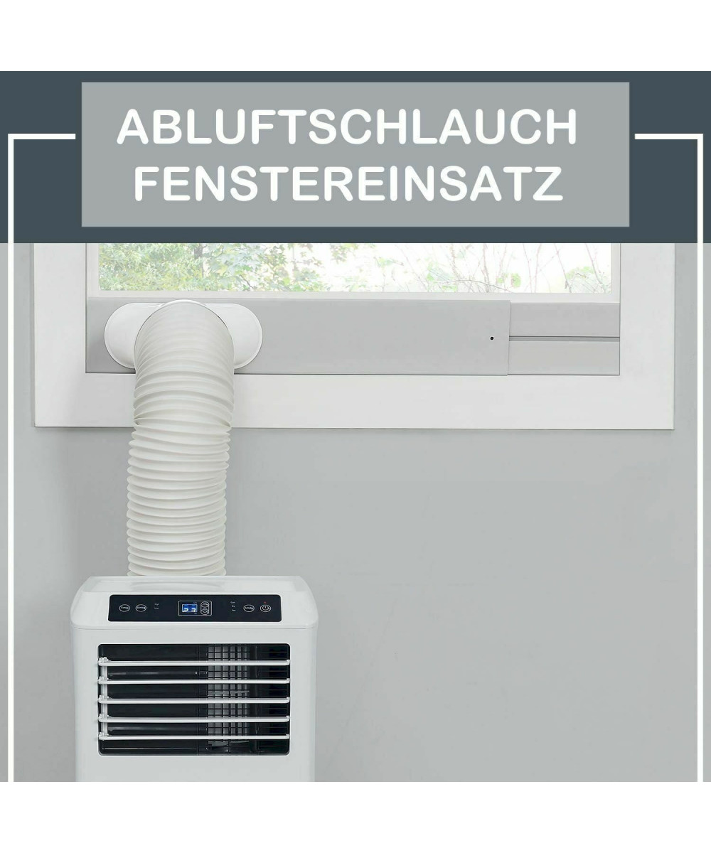 Zum Lieferumfang gehört ebenfalls ein Abluftschlauch. Über den Abluftschlauch wird das Klimagerät nach außen entlüftet. Abwärme und Feuchtigkeit gelangt auf diese Weise bequem aus der Klimaanlage.