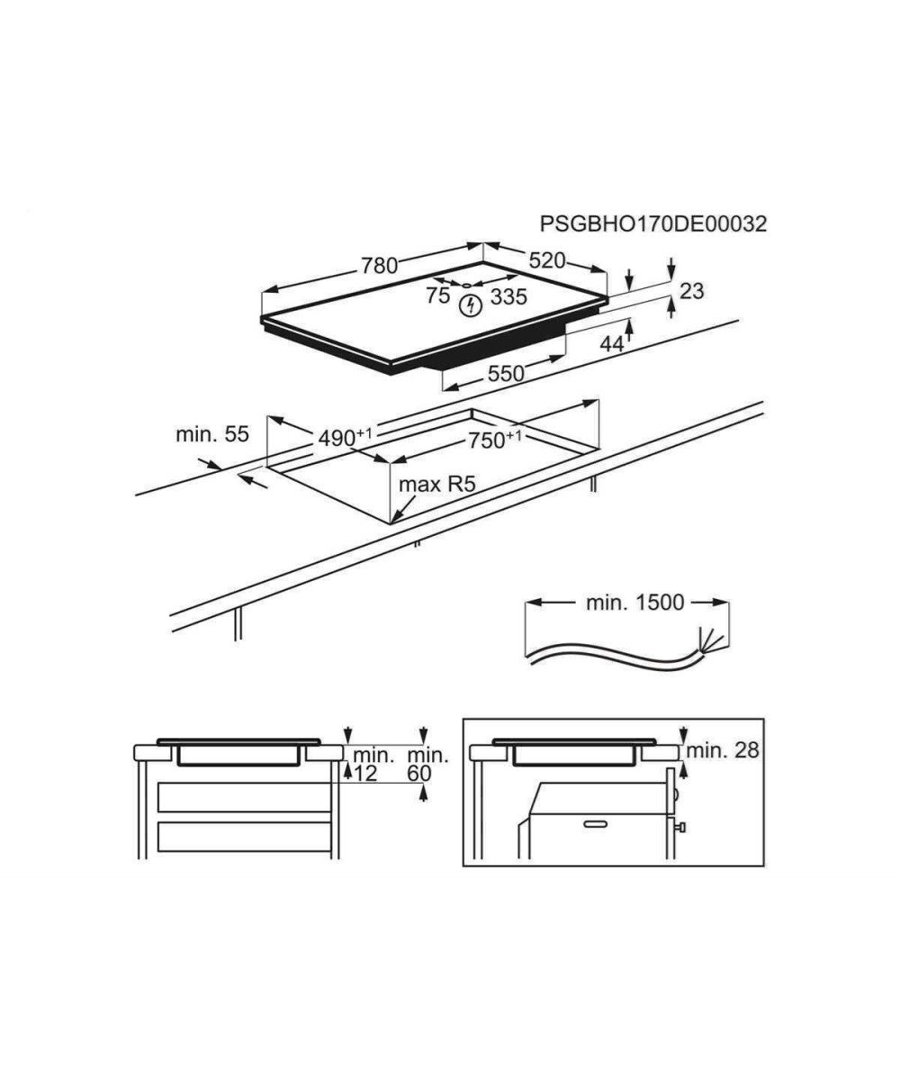 - SlimFit-Design- für den Einbau in jede Arbeitsplattentiefe: min. 12 mm, bei gleichzeitiger Installation einer Schublade oder min. 28 mm mit einem AEG-Backofen/-Herd darunter. Kein Einbau eines Schutzbodens erforderlich.