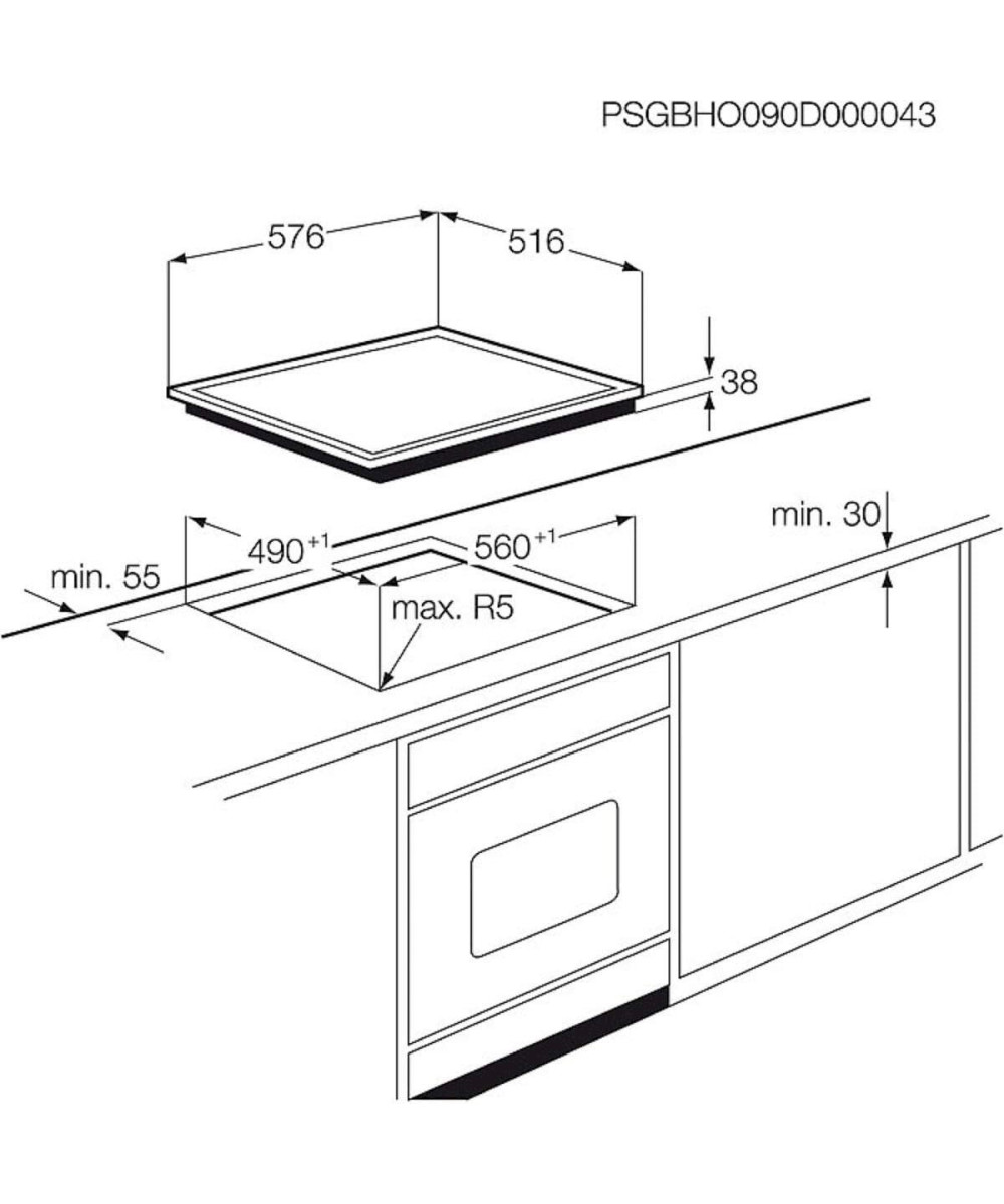 - Herdgebundenes Kochfeld, kombinierbar mit einem Einbauherd