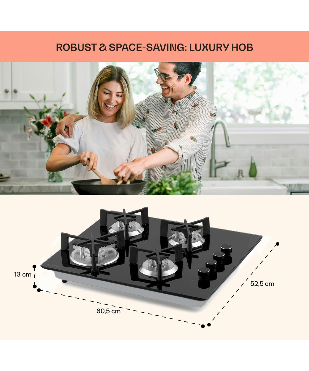 Klarstein Trifecta 4 Gaskochfeld 60cm 4-flammig Glaskeramik Gasherd