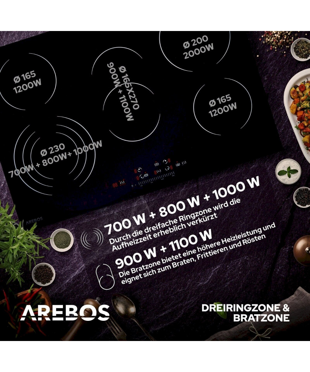 Arebos AR-HE-GK5N Glaskeramikkochfeld 5 Kochzonen 8700W
