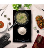 - Touch-Slider: Einfach per Fingertipp über den Slider des Bedienfeldes wischen, Ihre Kochzone wählen und die Heizintensität mit dem +/- Sensor regeln (1-9 Heizstufen)