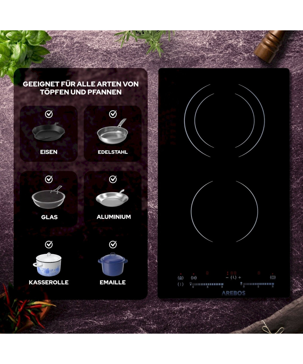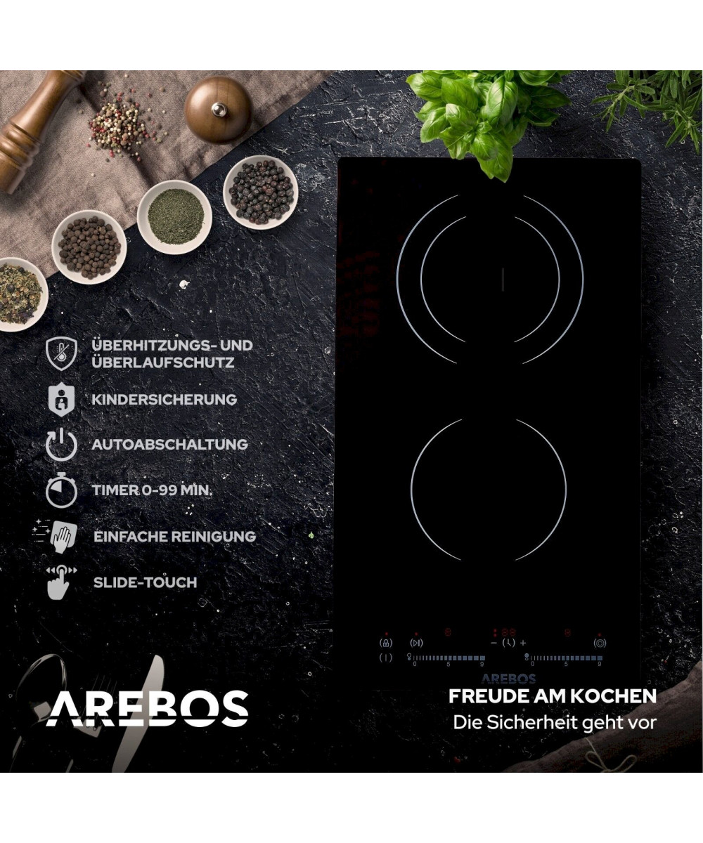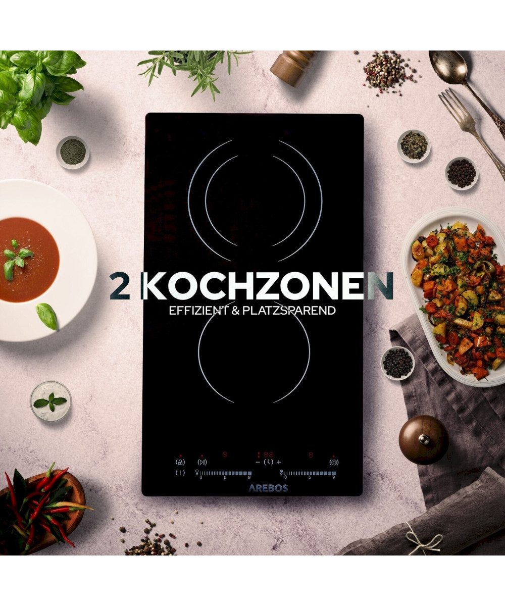 Arebos AR-HE-GK2NW Glaskeramikkochfeld 2 Kochzonen 3200W
