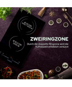- Modernes, autarkes 2-Zonen-Glaskeramikkochfeld 3200 W mit Gesamtleistung