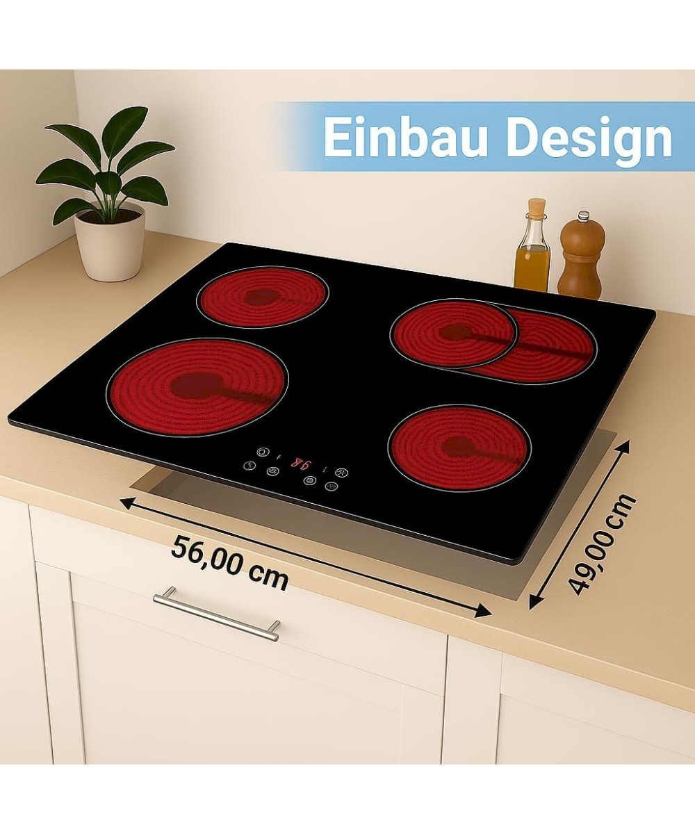 Besonders praktisch sind die Timerfunktion und die Kindersicherung. Die Oberfläche besteht aus eleganter Glaskeramik.