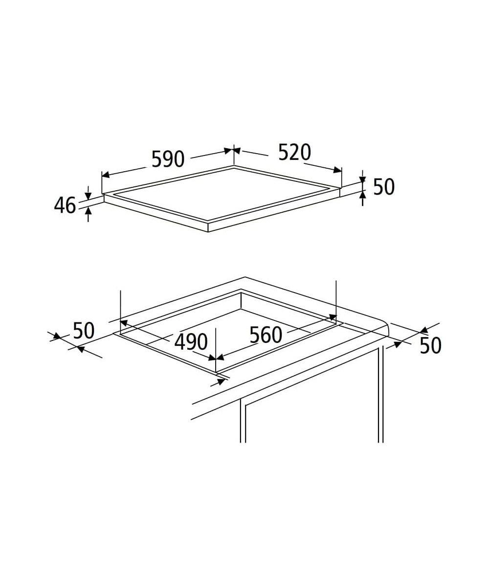 - Abmessungen Aussägung Kochfeld Breite 56,00 cm