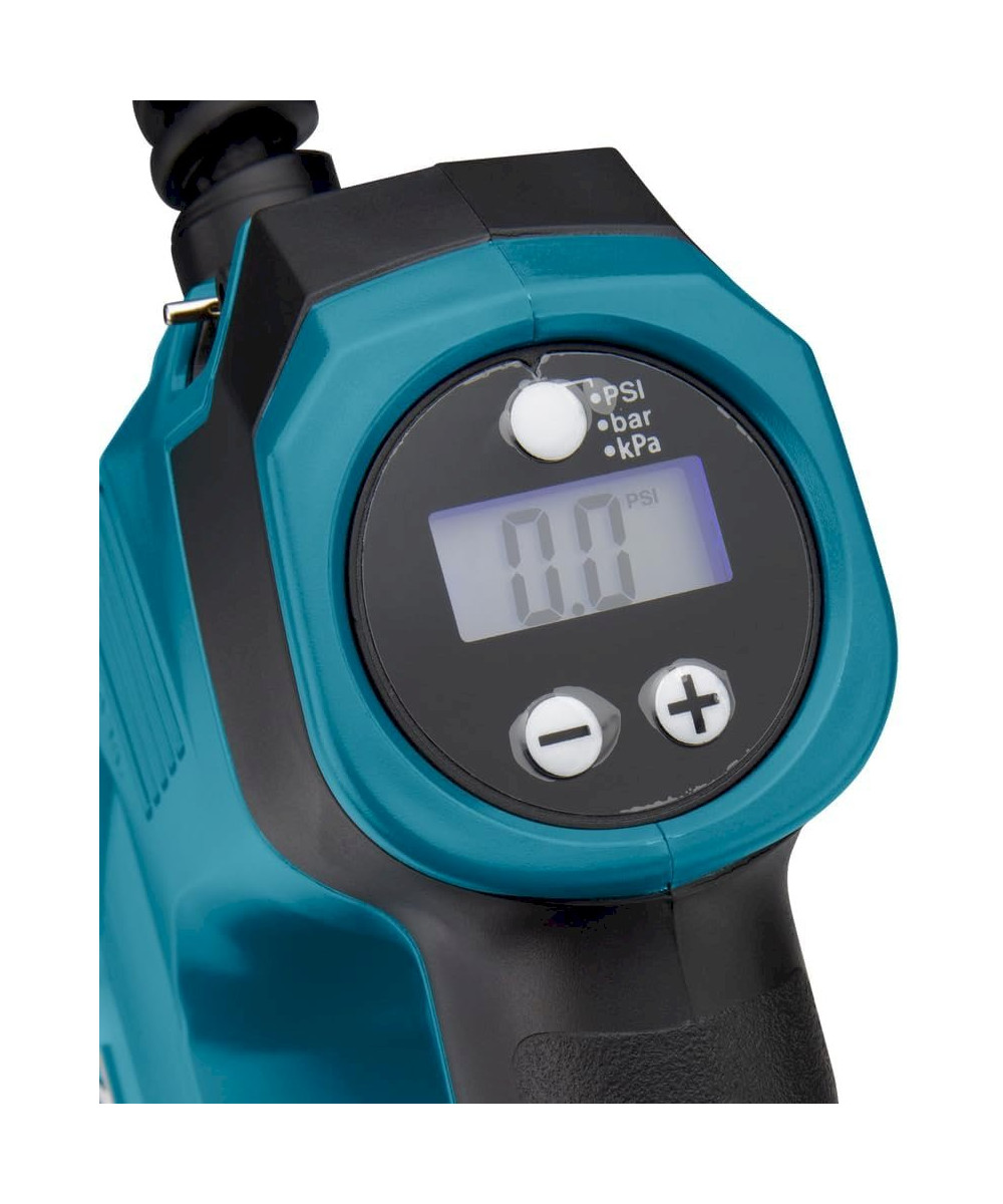 18 V Akku-Kompressor mit Display und + / - Tasten zum exakten Voreinstellen des gewünschten Drucks. Der Kompressor erreicht einen Druck von bis zu 8,3 bar. Mit Adaptern für Autoreifen, Fahrradreifen mit Blitzventil oder französischem Ventil, für Luftmatratzen und Bälle. Der Schlauch ist 0,65 m lang. Mit eingebauter LED zur Ausleuchtung des Umfelds.