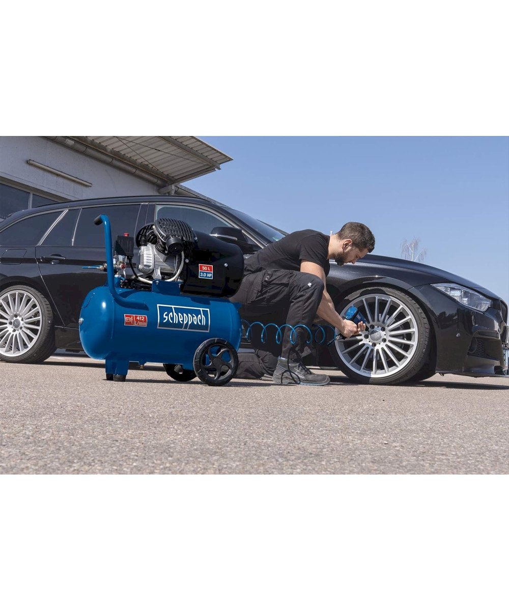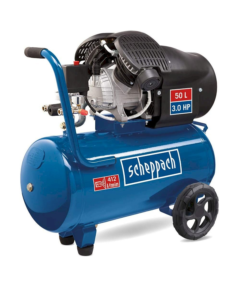 Wenn in Werkstatt, Garage oder auf der Baustelle ein Kompressor mit hoher Luftleistung benötigt wird, ist der Scheppach Doppelzylinder-Kompressor HC52DC das richtige Gerät. Dank zweier Schnellanschlusskupplungen können zwei Druckluftwerkzeuge gleichzeitig verwendet werden und der Doppelzylinder sorgt für eine hohe Ansaugleistung von 412 Litern pro Minute.