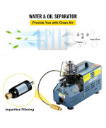 Dieser elektrische Hochdruck Luftkompressor verfügt über eine Öl- und Wasserabscheider-Filterung. Saubere Luft wird von der Maschine abgegeben, geeignet für die Mini-Tauchflasche, PCP-Gewehr, Paintball-Tank, Luftpistole, Paintball-Luftgewehr, Brandbekämpfung, Leckerkennung, Druckdichtigkeitstest, Luft-Dichtheitstest usw.