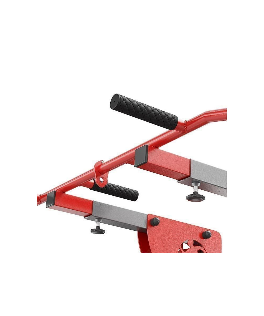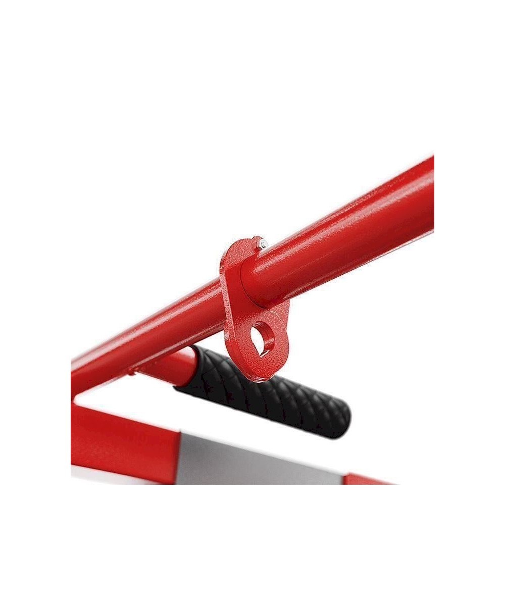 Die ausziehbare Stange sichert einen Komfort und den nötigen Platz beim Training am unteren Reck. Passen Sie unsere Konstruktion an Ihre Anforderungen an und steigern Sie die Effektivität Ihres Trainings! Dank dem einstellbaren Abstand der Handgriffe zu den Armstützen kann das Gerät an die Körpergröße des Trainierenden angepasst werden. Die Gummihebel geben einen festen Halt.
