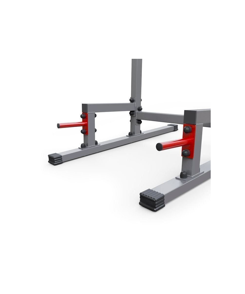 Breiter Beinabstand, zusätzliche Stützen, drei Querprofile, massive Struktur - all das garantiert die Stabilität unseres Recks.