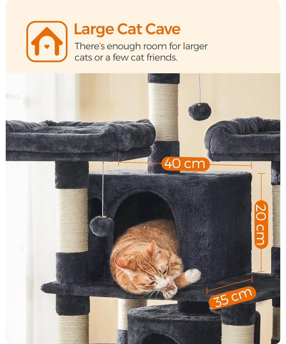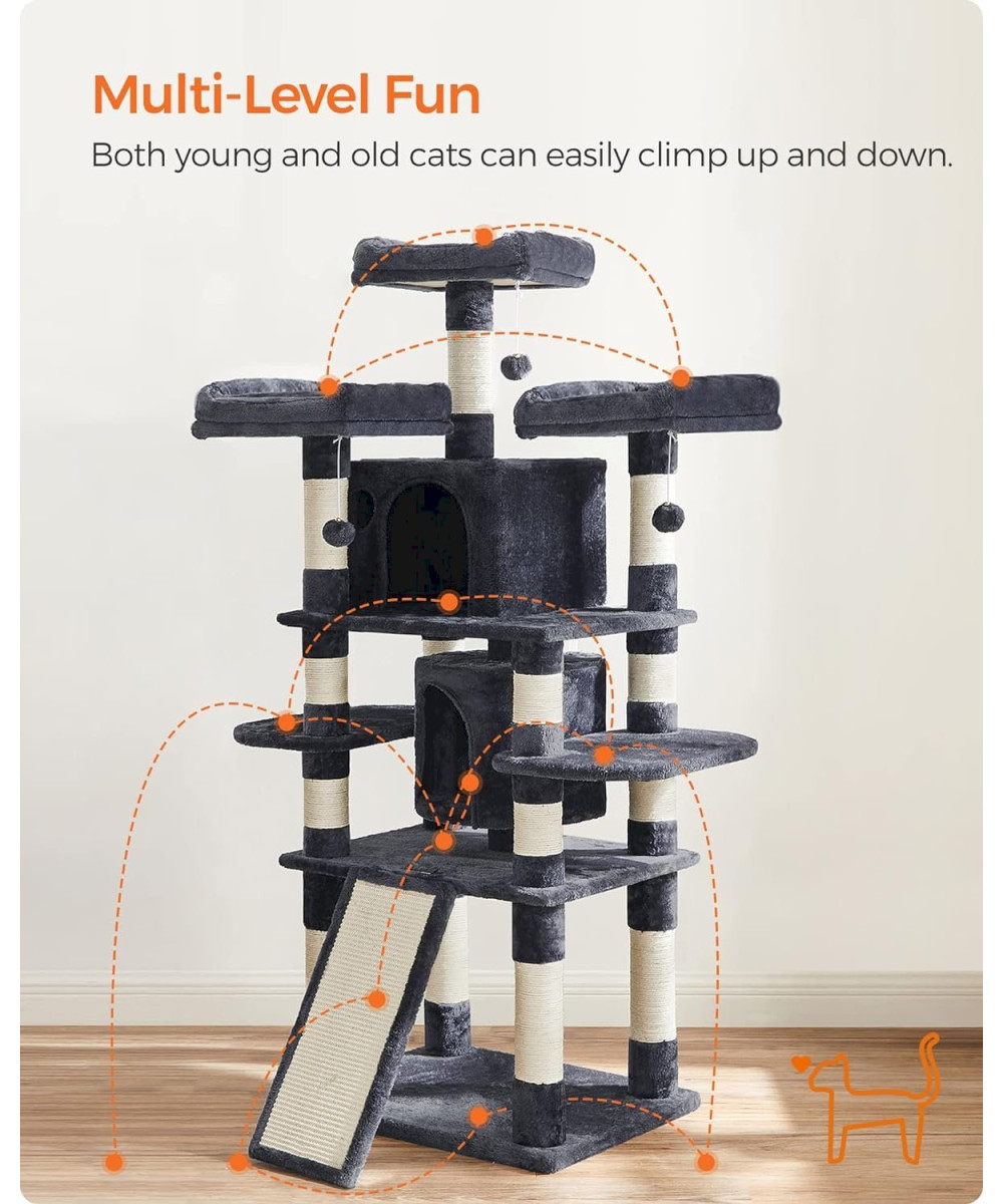 Feandrea Kratzbaum Kratzbaum Kletterbaum XXL 172 cm Rauchgrau