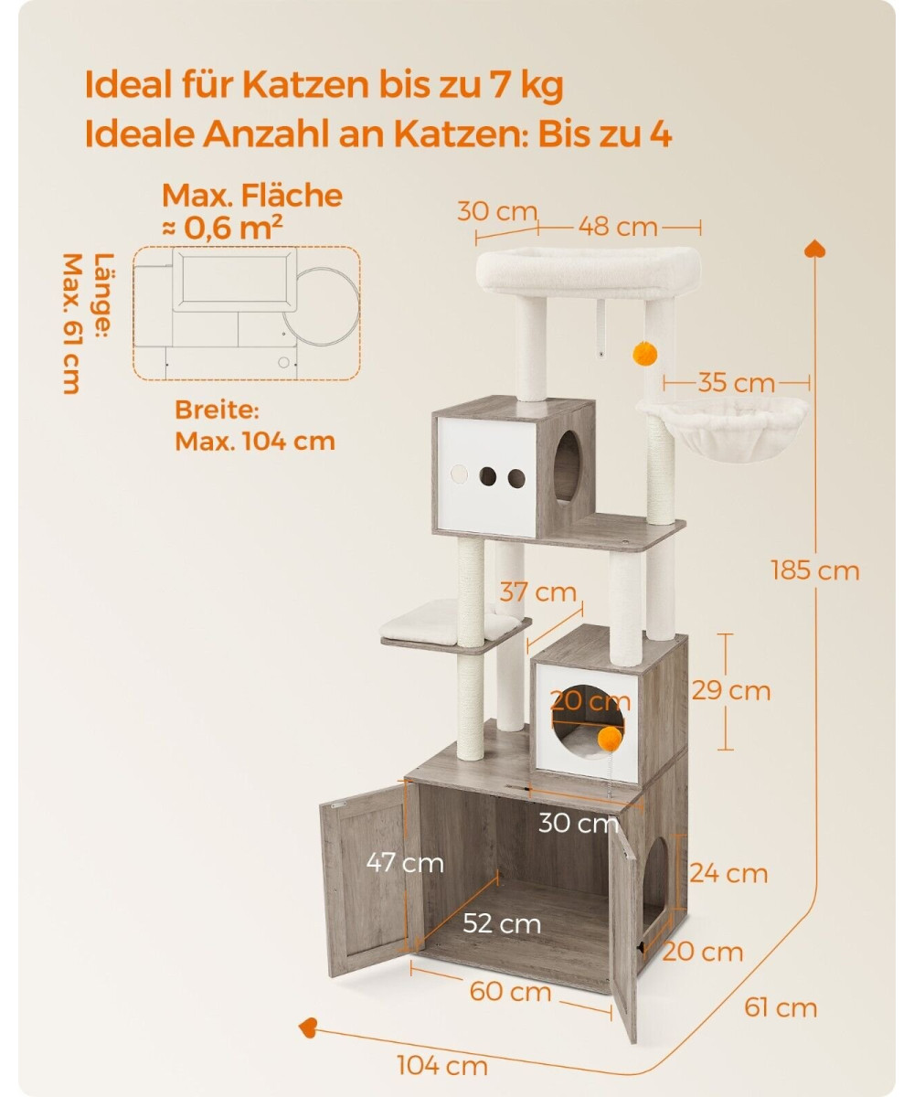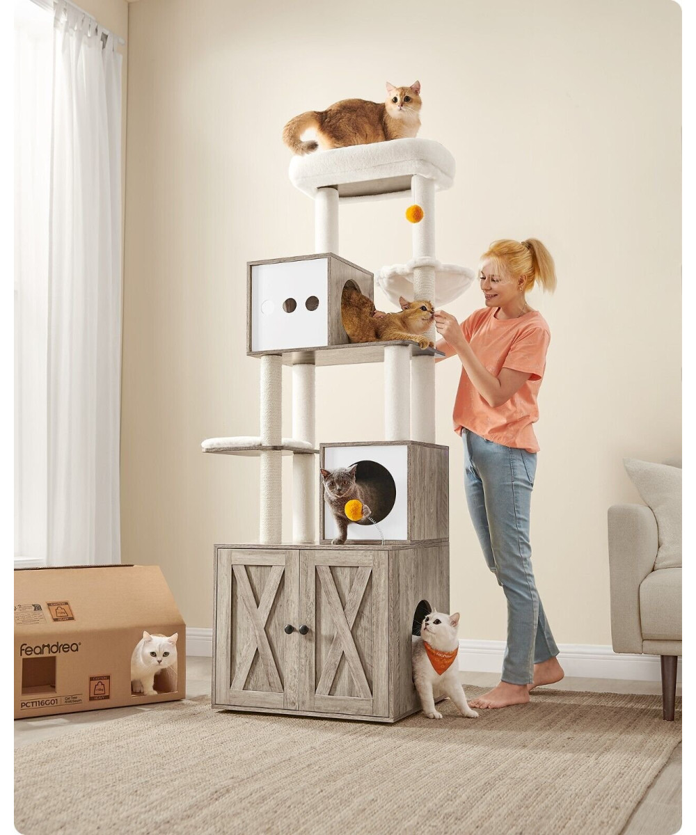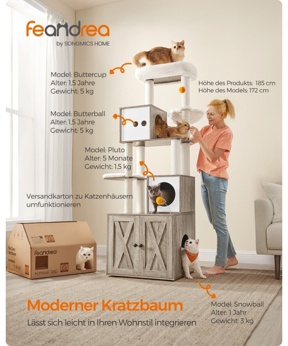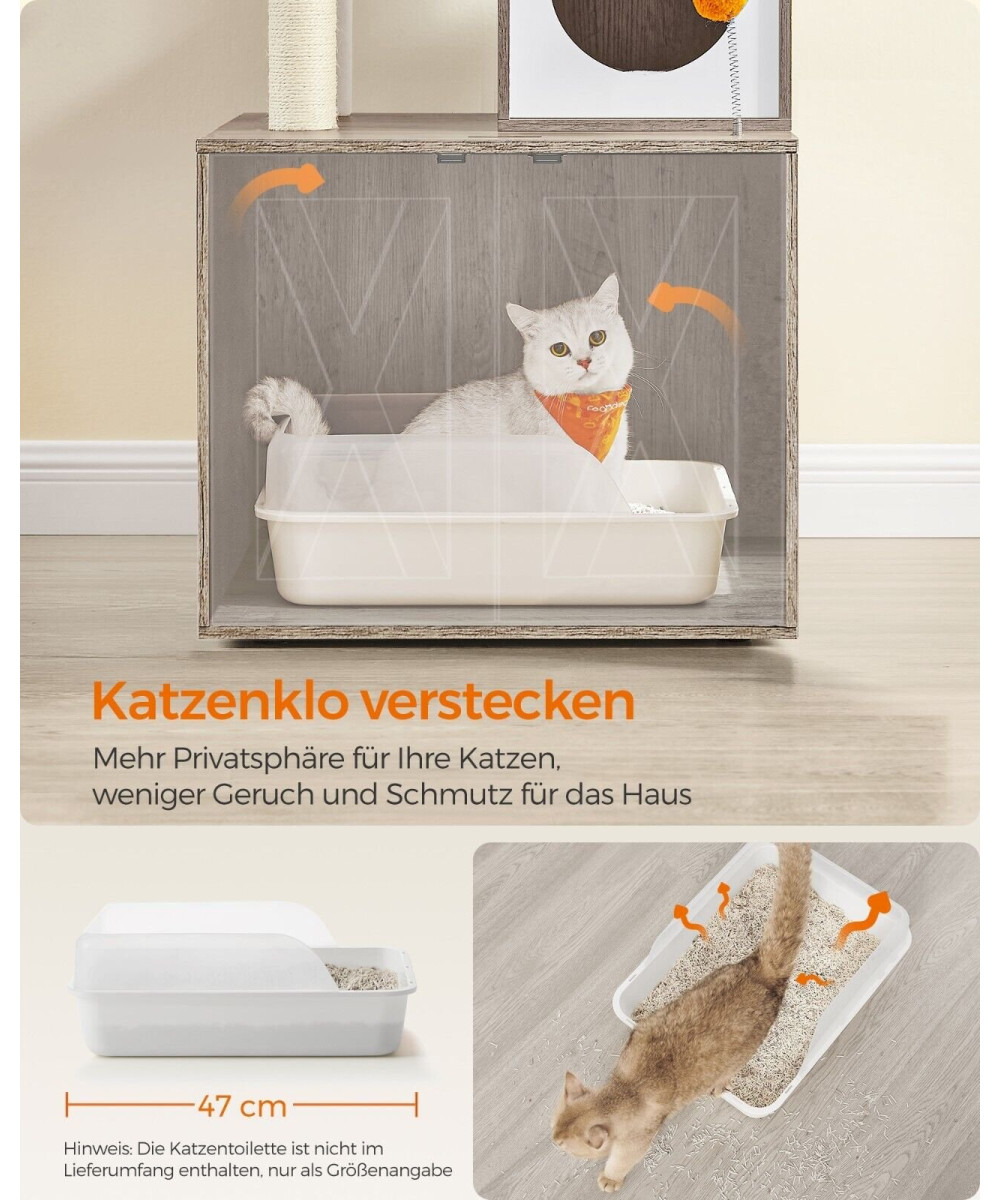 FEANDREA Kratzbaum mit Katzenklo-Schrank, 185cm