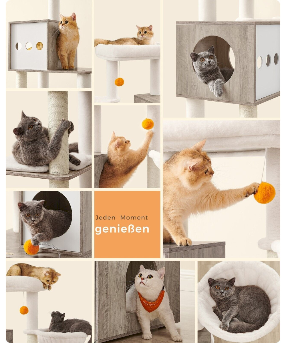 [Springen, beobachten, kratzen] Das mehrstufige Design erleichtert das Auf- und Absteigen. Die Plattform oben ist ideal zum Beobachten. Mehrere Kratzsäulen befriedigen den natürlichen Kratzinstinkt Ihrer Fellnasen