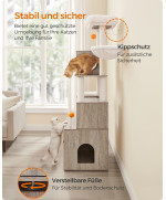 [Stabil und sicher] Mit den verstellbaren Füßen steht der Katzenbaum auch auf leicht unebenen Böden stabil; befestigen Sie das Katzenhaus mit dem mitgelieferten Kippschutz an der Wand, um eine sichere Umgebung für Ihre Vierbeiner und Sie zu schaffen