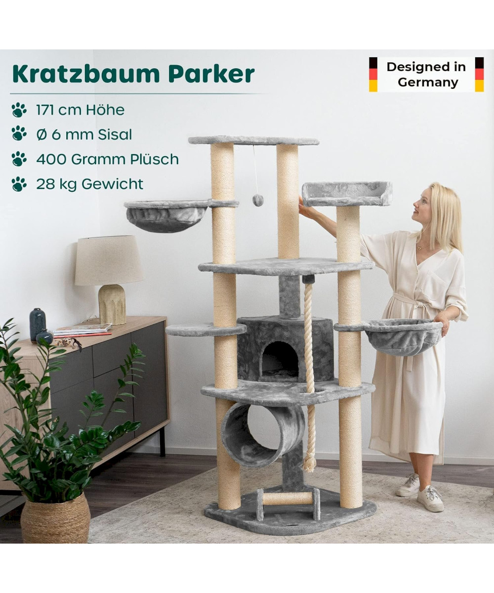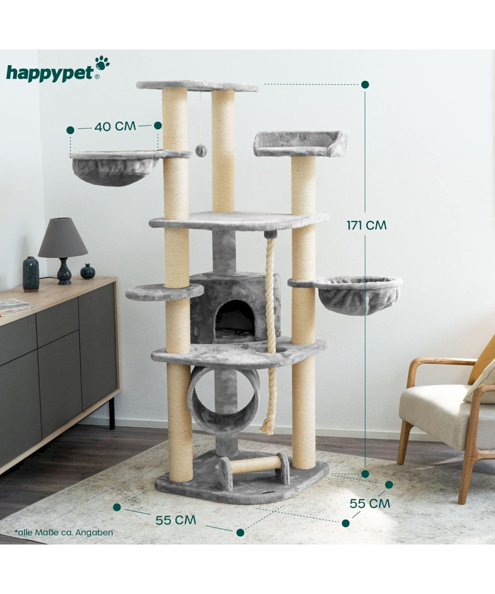 HAPPYPET Kratzbaum Katzenbaum Kletterbaum 171x70x70cm Grau