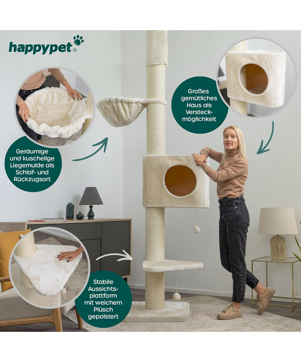 Kratzbaum deckenhoch 250 bis 275 cm für grosse Katzen bis 20 kg creme