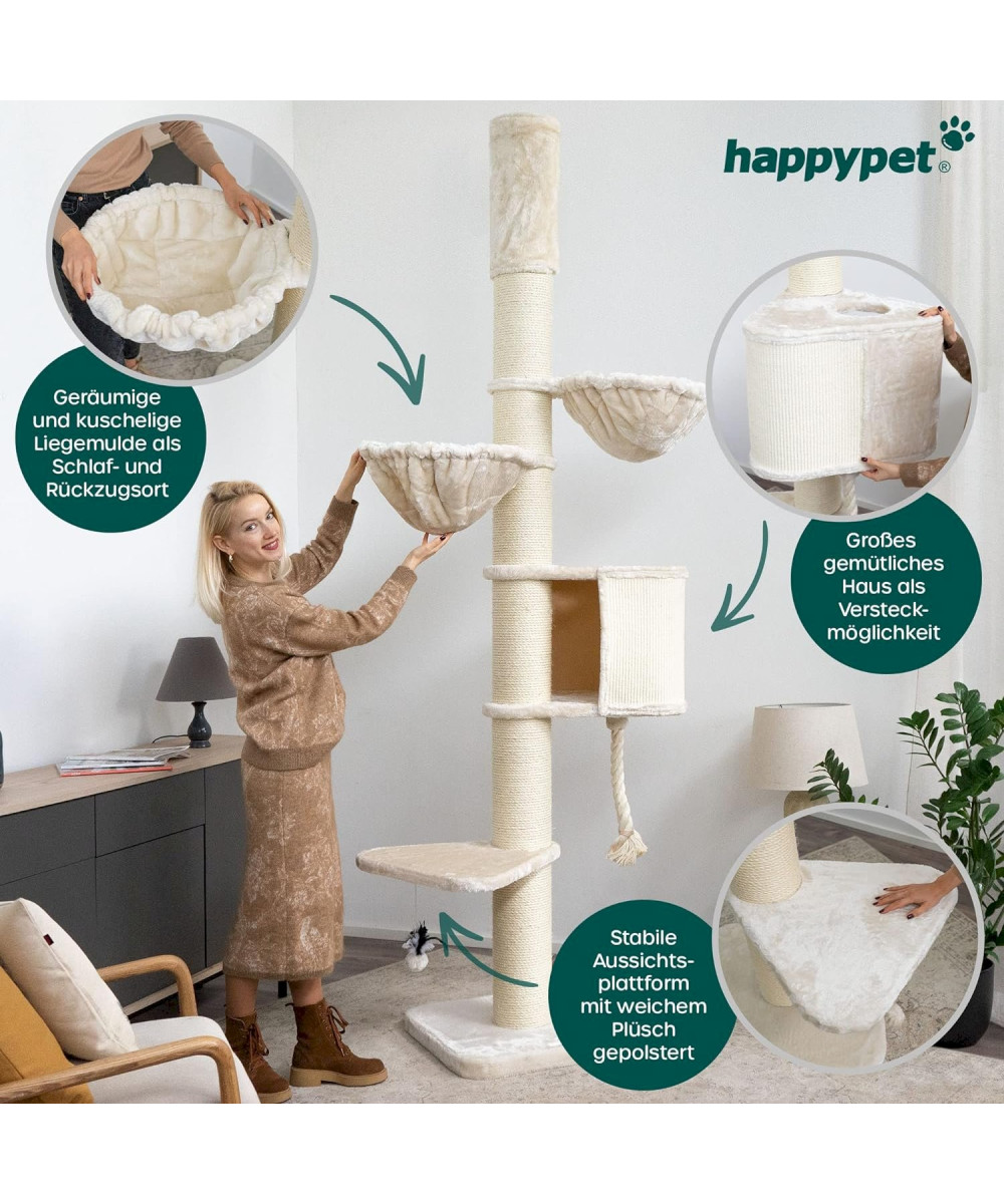 - Deckenhoher Katzenkratzbaum, höhenverstellbar von 250 bis 275 cm