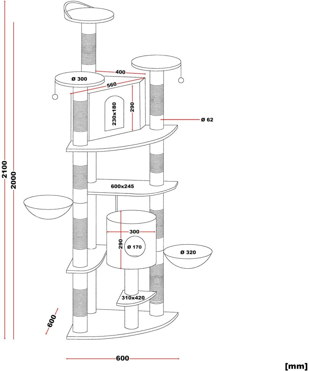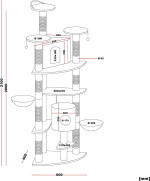 Zudem sind an den oberen Aussichtsplattformen zwei Spielbälle befestigt. Die ideale Beschäftigung für die Katze: Wird der Ball angetippt, beginnt er zu schwingen. Ist der Jagdtrieb der Katze geweckt, wird der Ball angegriffen. Die Elastizität der Schnur bringt den Ball zum Springen und die Katze kann sich austoben. Eine weitere Beschäftigung bietet das Sisalseil, dass unter einem der Plateaus angebracht ist. Für die nötige Stabilität sorgen die 60 x 60 cm große Bodenplatte sowie die 6 cm breiten Sisalstämme. Eine Bespannung mit extra weichem Stoff macht den Kratzbaum gemütlich.