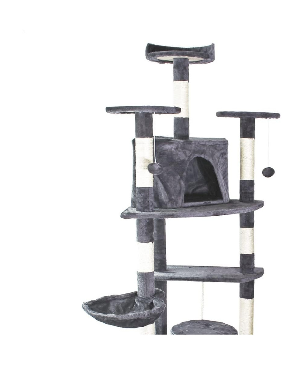 Die 3 großzügigen Aussichtsplattformen geben den Katzen einen tollen Überblick. Vor allem lieben Katzen erhöhte Liegeflächen. Von hier aus haben sie alles im Blick und fühlen sich richtig wohl. Damit auch ordentlich gekratzt werden kann, sind die Stämme mit strapazierfähigem Sisal umwickelt. Zusätzlich verfügt der Kratzbaum über zwei Liegemulden, drei Plateaus und zwei große Katzenhäuser. Dort können die Samtpfoten in Ruhe entspannen und ihre Umgebung beobachten.