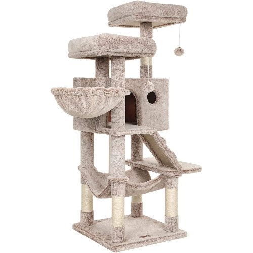 FEANDREA Katzenbaum mit weichem Bezug Hellbraun 135cm