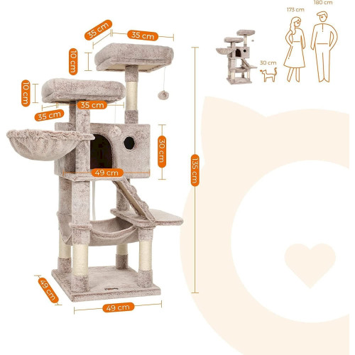 - Komfort steht im Mittelpunkt: Dieser 135 cm hohe Kratzbaum ist mit 500 g/m2 Plüschstoff (weicher, dichter und flauschiger) bezogen, damit Ihre Katze hier gut aufgehoben ist