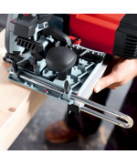 - Mit der Nut in der Grundplatte können die im Sonderzubehör erhältlichen Führungseinrichtungen als Kappschienen-Säge verwendet werden.