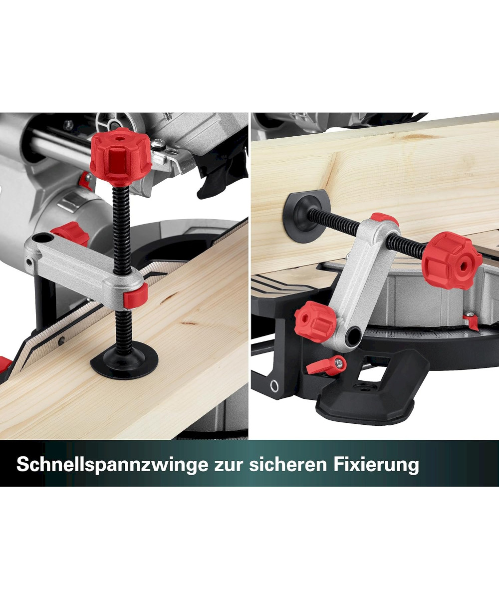 - Sägeblattneigung von -2 bis 47°, somit für Hinterschnitte geeignet